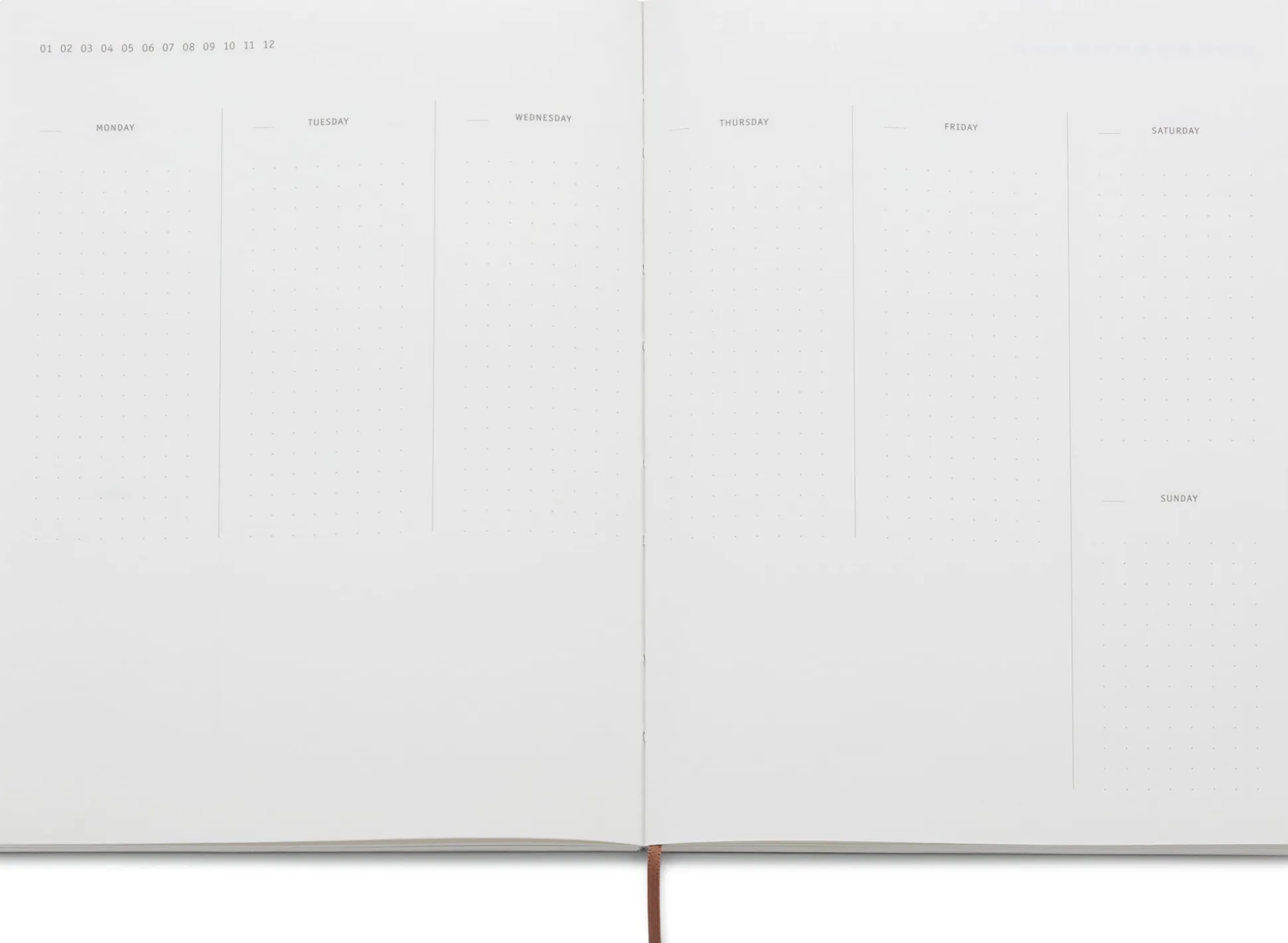Unprätentiös, ästhetisch ansprechend und buchbinderisch solide gefertigt: Der Wochenplaner mit haptisch angenehmem (und mittlerweile seltenem) Halbleineneinband besteht aus mehreren fadengebundenen Heften, sodass sich die 160 Seiten jeweils gut aufschlagen lassen. Das zartweiße Papier (100 g/qm) mit dezenter Lineatur ist tintenfest, kann also auch mit einem Tintenroller oder Füllfederhalter beschrieben werden.