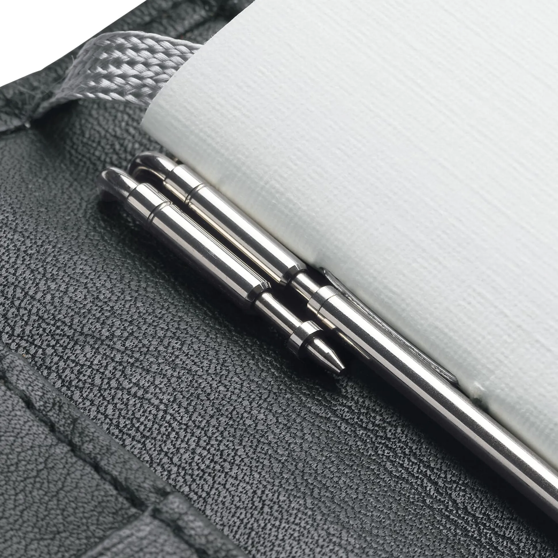 Ob für den anstehenden Tag der Jahres-, Monats- oder doch der detaillierte Wochenkalender gebraucht wird (oder auch alle drei), welche Lineatur das Notizpapier heute optimalerweise haben sollte (stehen Skizzen oder Schriftnotizen an?), lässt sich ebenso schnell entscheiden wie umsetzen – und zwar im Gegensatz zur Logik des Ringbuchs problemlos in ganzen Funktionseinheiten. Man trägt daher nur das mit sich herum, was tatsächlich benötigt wird – heute, aber auch morgen, wenn die Anforderungen womöglich ganz andere sind.