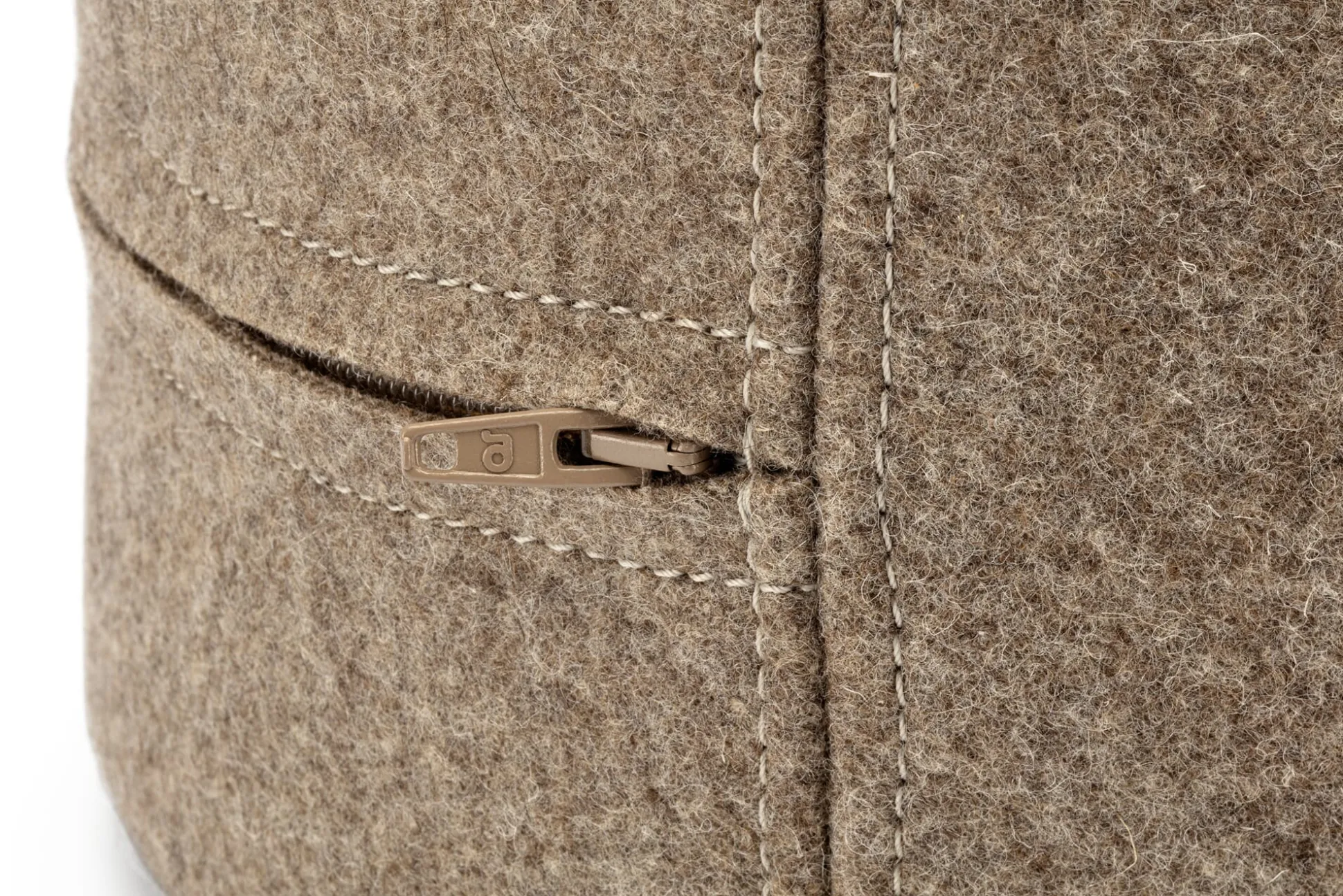 Der Wollfilzbezug und das Inlett aus Baumwolle sind jeweils mit einem Reißverschluss versehen. So können Sie zum einen die Sitzhöhe individuell anpassen. Zum anderen lässt sich der Bezug ganz abnehmen und bei Bedarf reinigen. Schurwolle ist generell jedoch recht unempfindlich und zudem schmutzabweisend. Durch ihre schuppige Oberfläche sind die einzelnen Fasern sehr glatt, sodass Staub & Co. nicht so leicht daran haften bleiben und die Wolle über eine Art Selbstreinigungseffekt verfügt. Die untere Seite des Sitzkissen-Bezugs besteht aus unempfindlichen Rindveloursleder. Es ist rutschfester als der Wollfilz und zeigt immer an, welche Seite auf den Boden gehört.