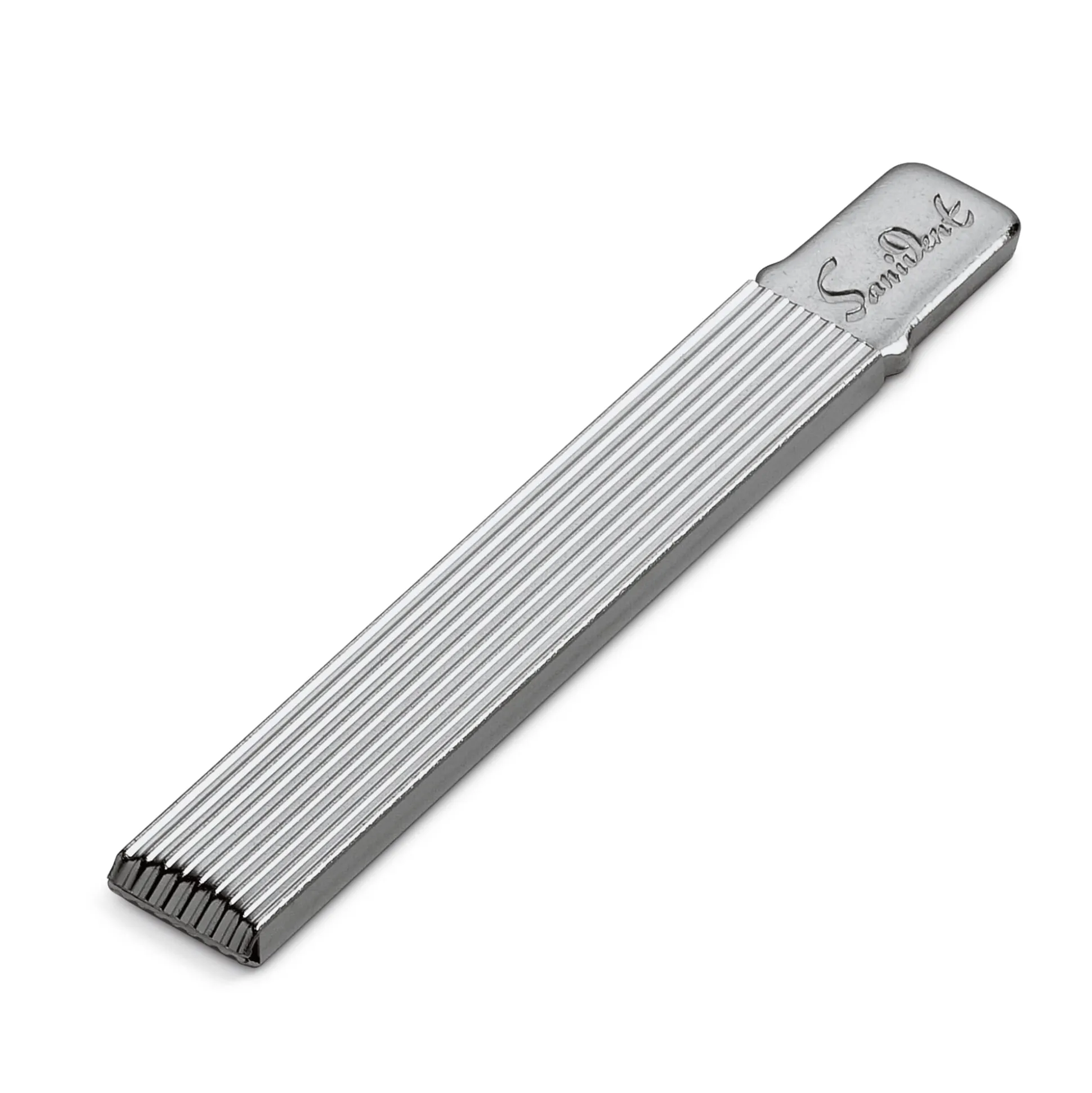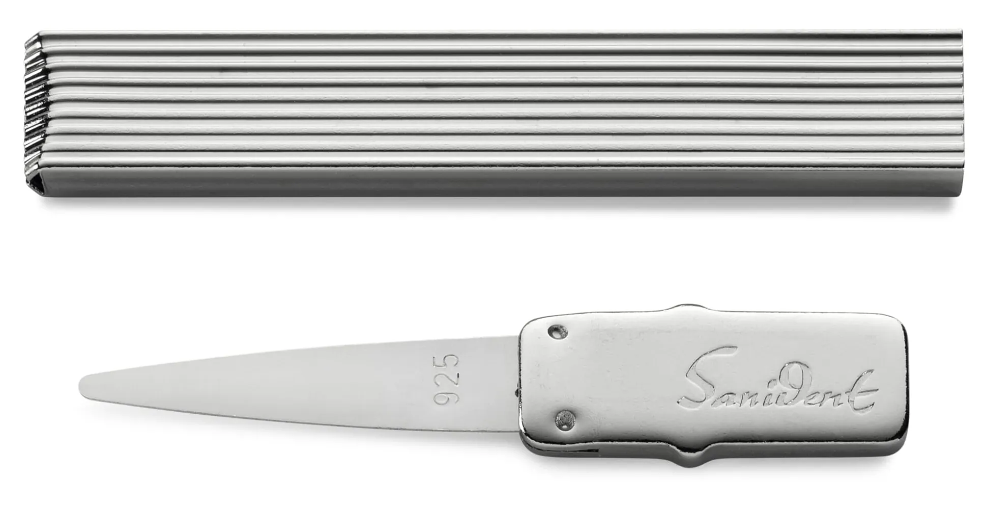 Der eigentliche Zahnstocher besteht aus einem extrem dünnen Blatt aus 925er Silber von nur 0,5 mm Stärke. Es ist so dünn und flexibel, dass es in nahezu jeden Zwischenraum gelangt. Aufgrund seiner Weichheit kann es dabei den empfindlichen Zahnschmelz nicht verletzen. Damit das feine Blatt selbst bei Nichtgebrauch und unterwegs gut geschützt ist, wird es in den 2 mm starken, hohlen Stahlgriff geschoben. So können Sie den Zahnstocher in der Tasche oder im Portemonnaie stets mit sich führen. Bei Bedarf wird er dann einfach wieder auf den Griff aufgesteckt.