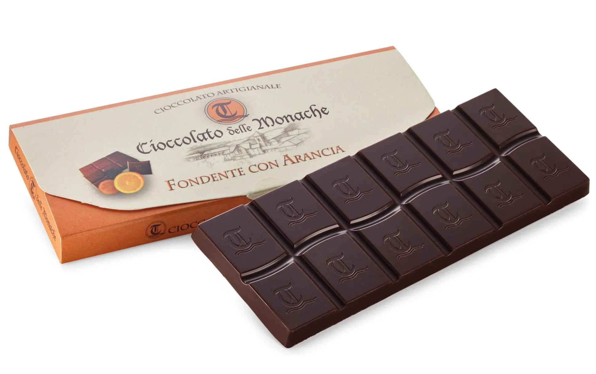 Für diese Zartbitterschokolade verarbeiten die tschechischen Trappistinnen belgische Rohschokolade bester Qualität nach ihrem eigenen Geschmack. Je nach Sorte verfeinern sie die Schokolade mit würzenden Beigaben – in diesem Fall mit feinwürzigen kandierten Orangenschalen.