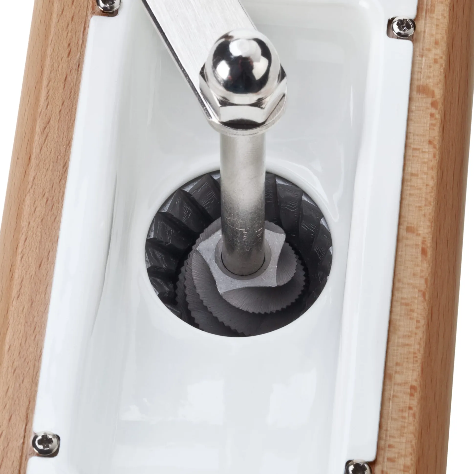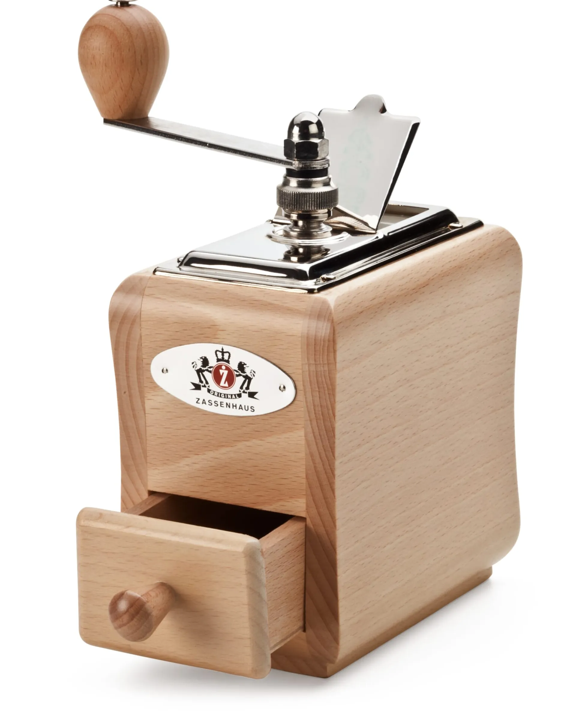 Um ein Haar wäre es um Zassenhaus geschehen gewesen, doch der im Jahre 1867 in Schwelm in Nordrhein-Westfalen gegründete Spezialist für Präzisionsmahlwerke des häuslichen Bedarfs hat sich zu unserem Glück konsolidieren können. So gibt es diese Kaffeemühle immer noch in unserem Sortiment: In ihrem Inneren arbeitet ein regulierbares, in Feinwerktechnik gefrästes Präzisionsmahlwerk, das mit einem von vier Nocken exakt geführten Mahlkegel mit zentrisch gelagerter Spindel ausgestattet ist. Das massive Buchenholzgehäuse verjüngt sich zur Mitte, so kann die Mühle bequem gehalten werden.