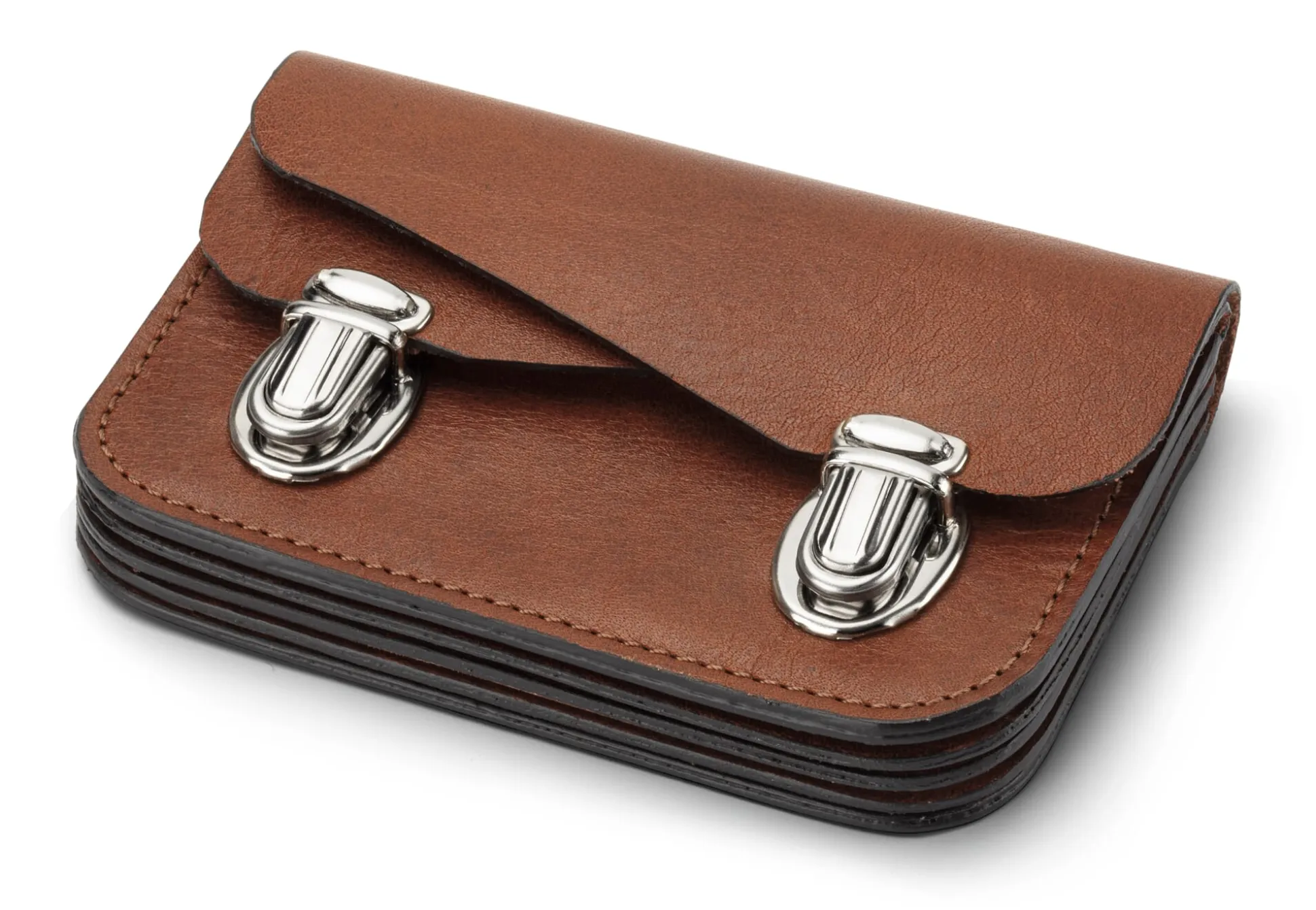 Rindleder (Stärke 1,4–1,6 mm, teilweise auf 0,9–1,1 mm gespalten), vegetabil gegerbt, Herkunft Deutschland. Ungefüttert, mit geschliffenen und gefärbten Kanten. Schloss aus Stahlblech vernickelt. Hergestellt in Tschechien.