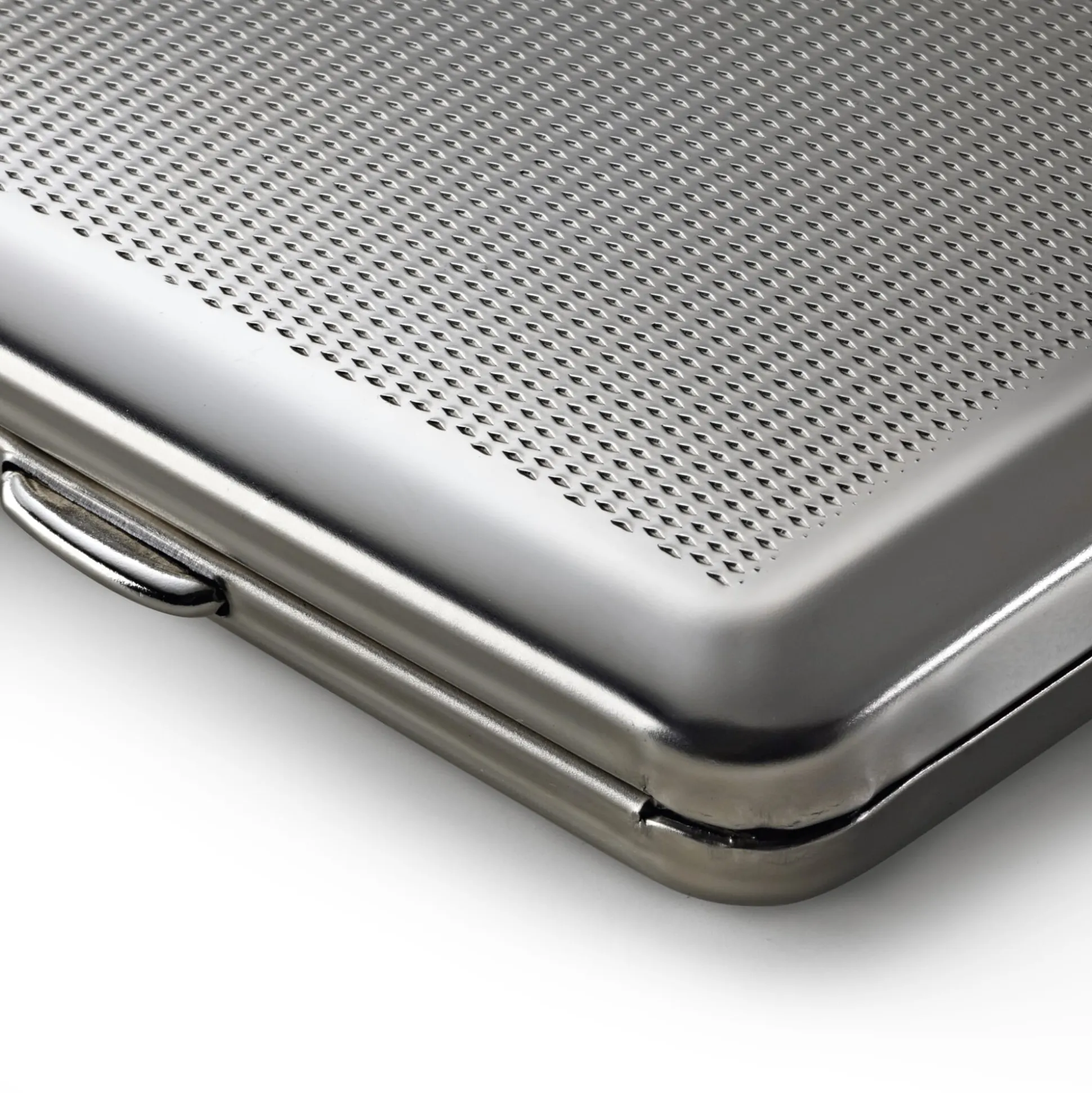 Das Tiefziehen ist ein industrielles Massenproduktionsverfahren – fachlich dem sogenannten Zugdruckumformen zugehörig –, das die kostengünstige Reproduktion von Metallbauteilen und damit die Herstellung hochwertiger, aber nicht hochpreisiger Produkte ermöglicht. In Deutschland ist das Tiefziehen von Konsumgütern dennoch selten geworden, jedoch nicht aus Gründen der Qualität, sondern des verschärften globalen Wettbewerbs. Von einem der wenigen verbliebenen deutschen Hersteller stammen unsere tiefgezogenen Etuis aus hochglänzend vernickeltem Stahlblech, das dank seiner Robustheit – harte Schale, geschützter Kern – hochgeschätzt wird. Boden und Deckel sind mit unterschiedlichen Dekoren geprägt: mit Punktdekor, mit floralem Muster oder mit einem Streifendekor und Gravurfeld.