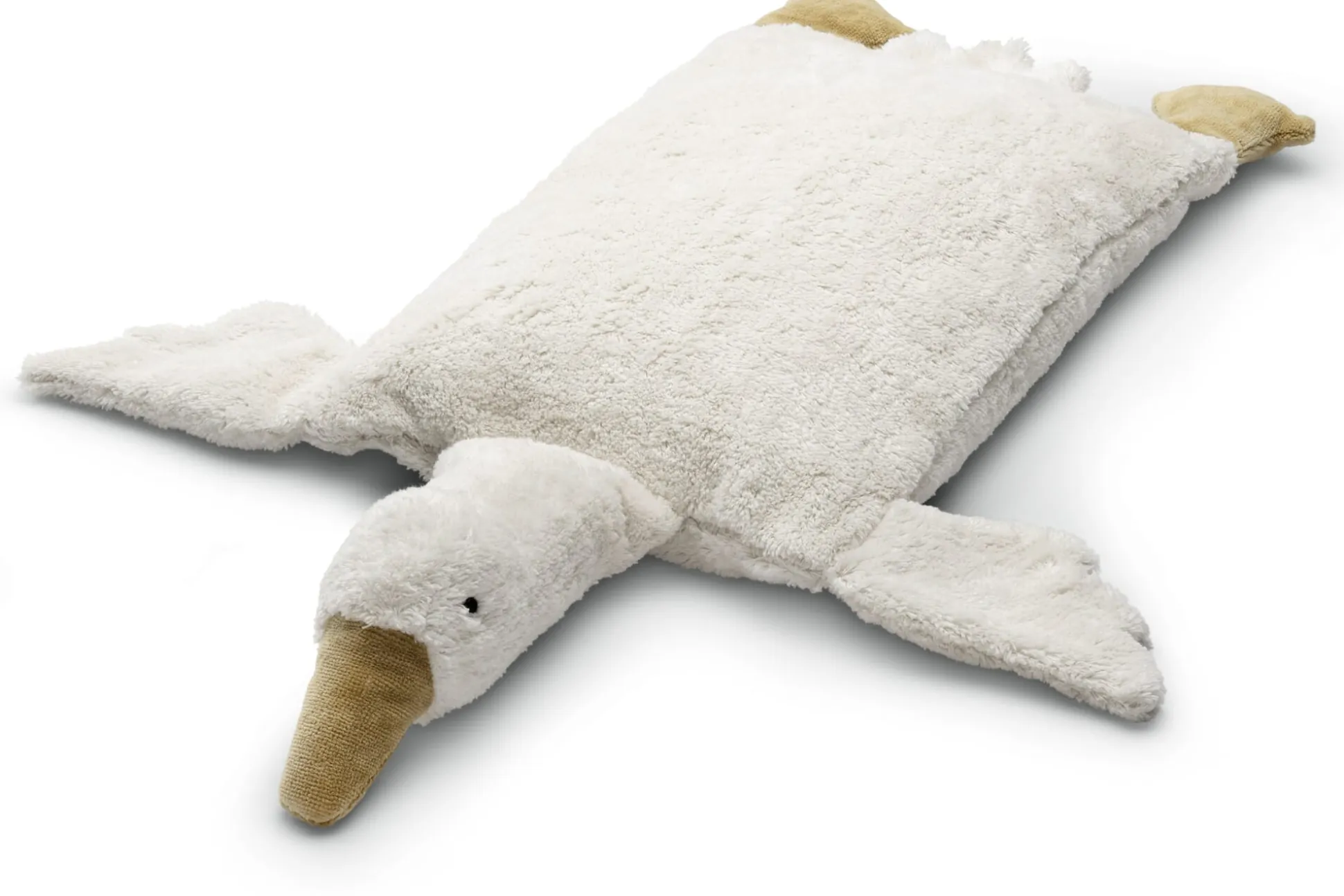 Alles, was zum Anschmiegen gemacht ist, muss sich weich anfühlen, darin sind sich Kinder und Erwachsene wohl einig. So überzeugt dieses Kissen bereits in Sachen Kuscheleigenschaften auf ganzer Linie: Sein Plüschbezug aus kbA-Baumwolle ist besonders flauschig, Kopf und Füße sind mit reiner Schurwolle gefüllt und ebenso angenehm im Griff. Völlig entspannt hingestreckt, erfüllt die Plüschgans damit alle Voraussetzungen, als Schmusekissen lieb gewonnen und vor allem beim Einschlafen ausgiebig bekuschelt zu werden. Zusätzlich befindet sich in der Gans ein herausnehmbares Baumwollkissen: Es ist mit feinen Zirbenflocken gefüllt. Denn Holz und Nadeln der Zirbe enthalten ätherische Öle und Harze, deren typischen herb-aromatischen Duft (nicht nur) viele Kinder als besonders wohltuend empfinden. Dezent begleitet der angenehme Zirbenduft des Kissens Ihr Kind, während es zur Ruhe kommt. Und beim Aufwachen begrüßt die Gans Ihr Kind ganz sicher wieder mit einem warmen Hallo und einem sanften Kuscheln.