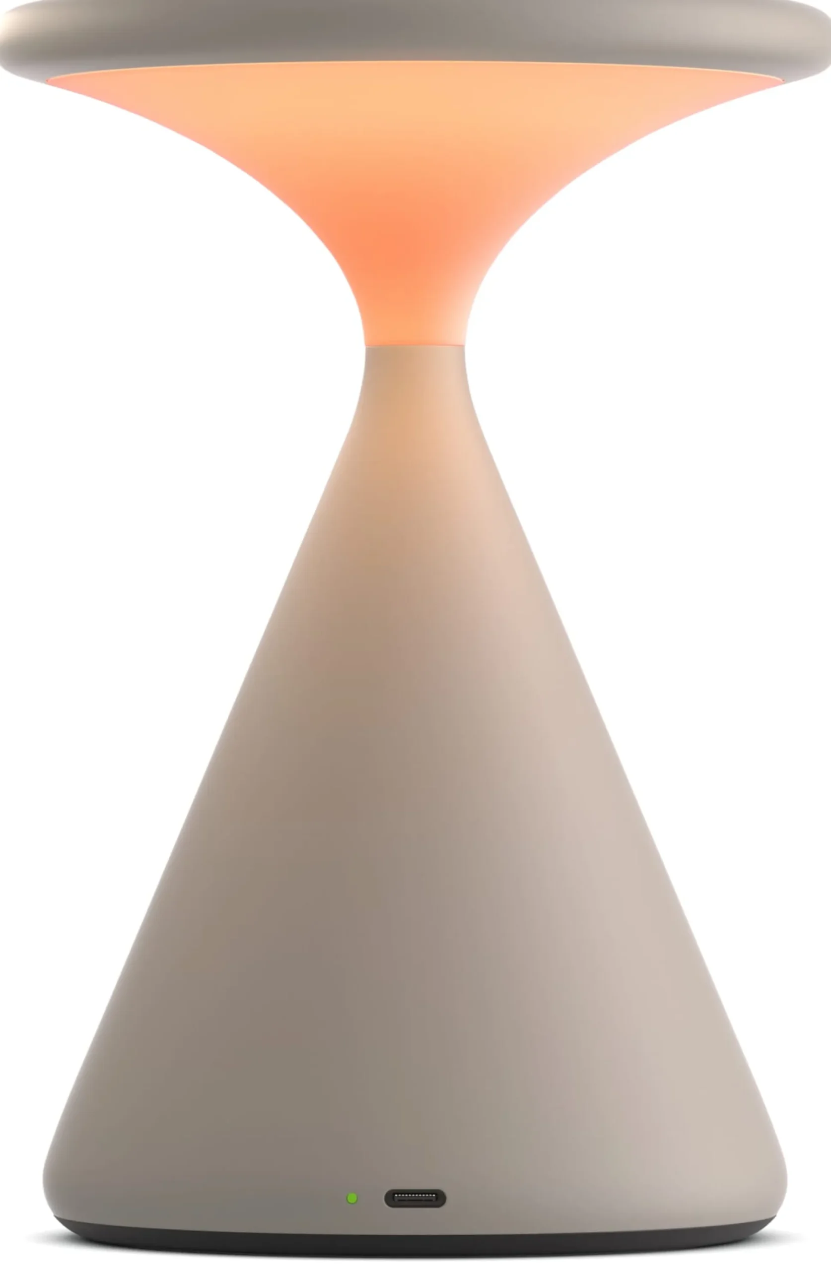 Mobile Akkuleuchten sind derzeit omnipräsent, was nicht zuletzt daran liegt, dass ihre Handhabung ungemein praktisch ist und die Leuchten vielseitig einsetzbar sind. Große Unterschiede gibt es jedoch auch hier – in Sachen Materialität, Form und Leistung. Hier kommt eine Leuchte von Grau in Hamburg, die unserer Meinung nach derzeit das oberste Ende in diesem Segment markiert. Das beginnt beim Material. Das Gehäuse besteht aus optisch wie haptisch angenehmem hellgrau pulverbeschichtetem Aluminiumdruckguss, der Diffusor ist aus stabilem Polycarbonat. Sodann die Funktion: Der Leuchtenkörper hat die Form eines Kegels, was einerseits Raum für die verbauten Akkus gibt, die der Leuchte eine Laufzeit von sage und schreibe 8 bis 150 Stunden spendieren. Andererseits reflektiert er das Licht in einem günstigen Winkel (wir erinnern uns: Einfallswinkel gleich Ausfallswinkel) in den Raum.