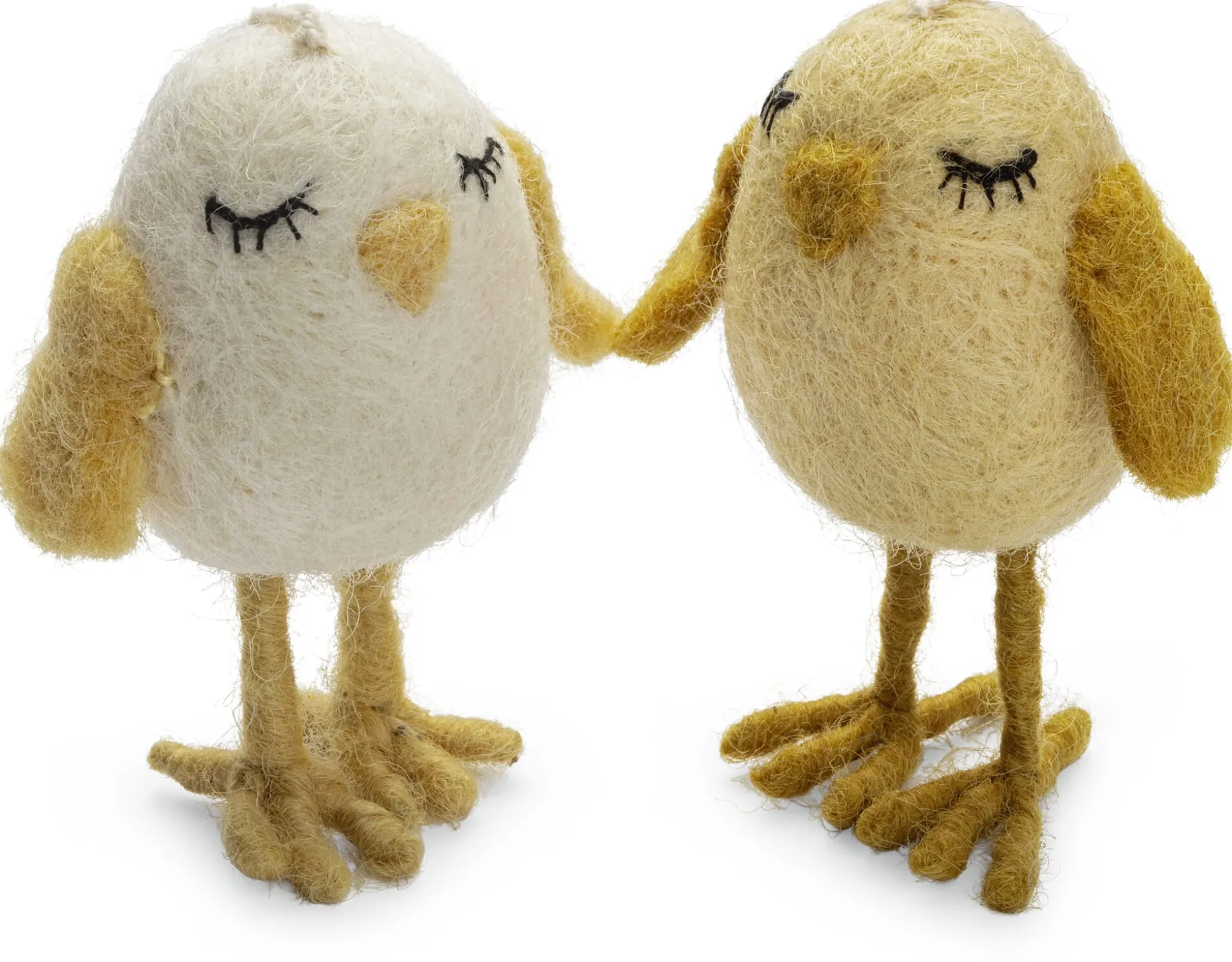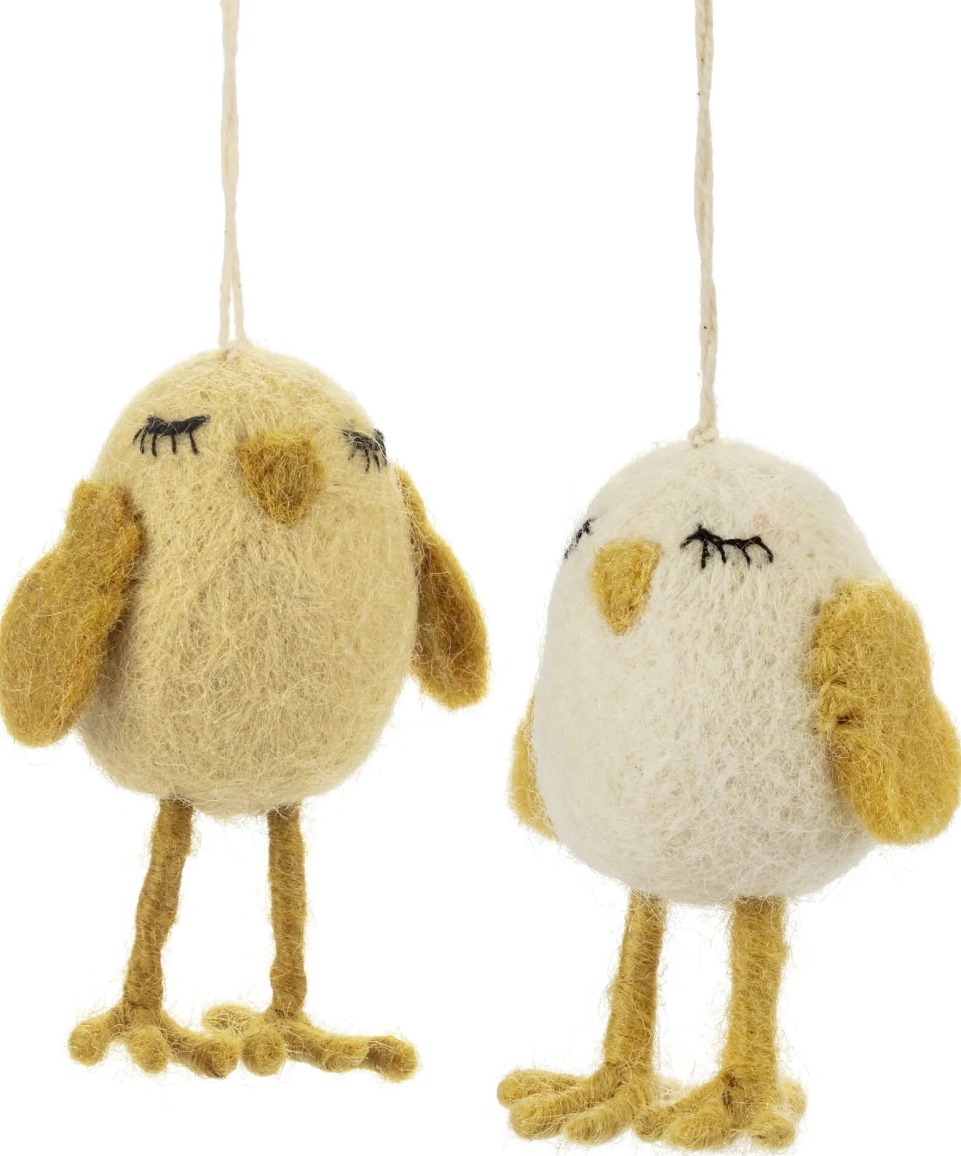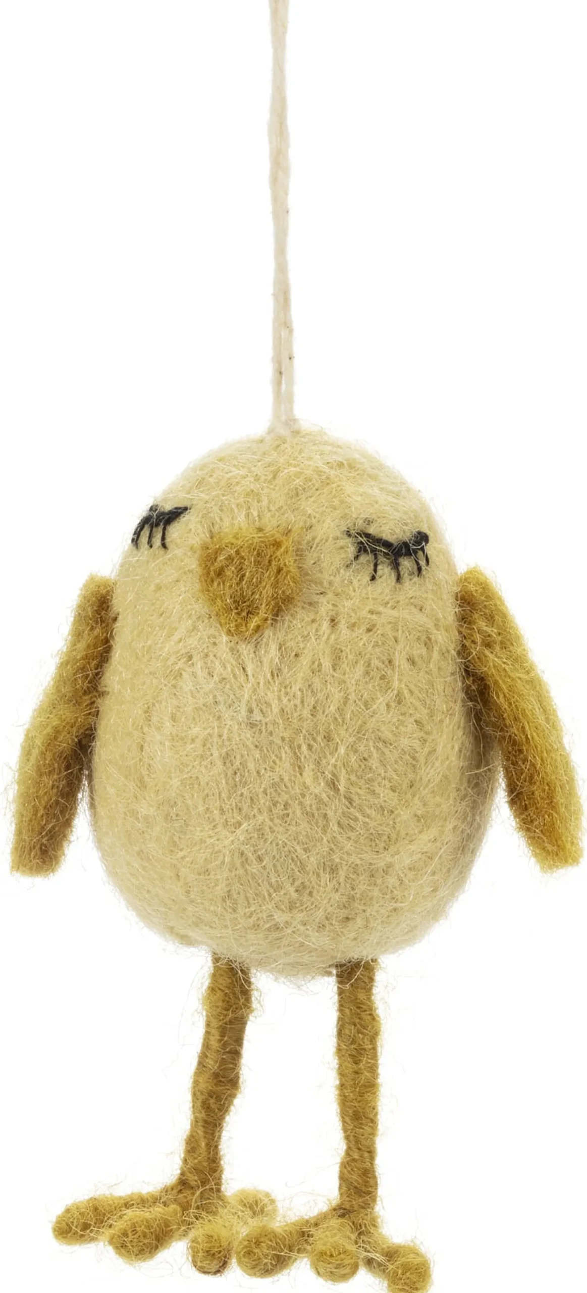Ein wenig entrückt wirken diese Küken mit ihren geschlossenen Lidern. Lassen Sie sich nicht täuschen, denn material- und fertigungstypisch sind (und bleiben) die Kleinen ganz bei der Sache: Aus reiner Schurwolle handgefilzt und ebenso von Hand bestickt, zeichnen sie sich durch ihre ausdauernde Beständigkeit aus. So werden sie nicht zum munter krähenden Hahn heranwachsen, sondern Jahr um Jahr mit verträumtem Ausdruck Ihre Dekoration um ein skandinavisch inspiriertes Element bereichern: Denn in Schweden ist nicht der Osterhase, sondern das Osterküken für Ostereier und alle weiteren Leckereien verantwortlich – eine Tradition, welche die dänische Designerin dieses Anhängers liebevoll aufgegriffen hat. Und falls Sie meinen, zwischen Ihren Osterzweigen und bunten Eiern sei gerade kein Platz mehr für solch dekorative Entschleunigung, so wirken die Küken ebenso als freundlicher Tafelschmuck, als Mitbringsel zum Osterbrunch oder einfach als kleiner Glücksbringer im Fenster.