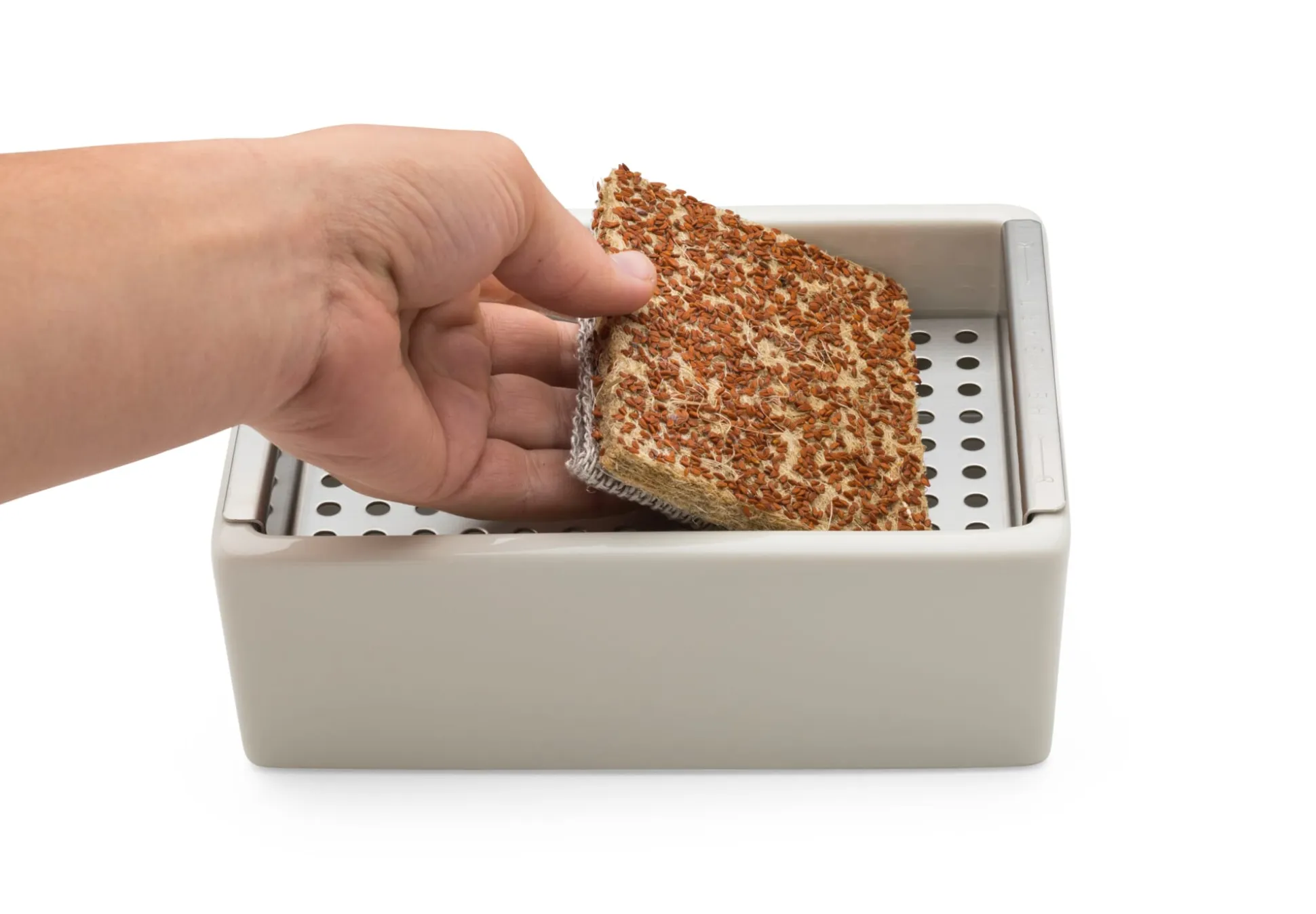 Mit diesem Set lässt sich das gesunde Grün einfach selbst ziehen. Es besteht aus zwei Teilen: aus einer kompakten, als Wasserbehälter dienenden Schale aus Porzellan und einem Siebeinsatz aus Edelstahl. Das Porzellan wird bei Seltmann Weiden, Porzellanmanufaktur in der Oberpfalz seit 1910, produziert, und auch der Edelstahleinsatz wird noch in Deutschland hergestellt.