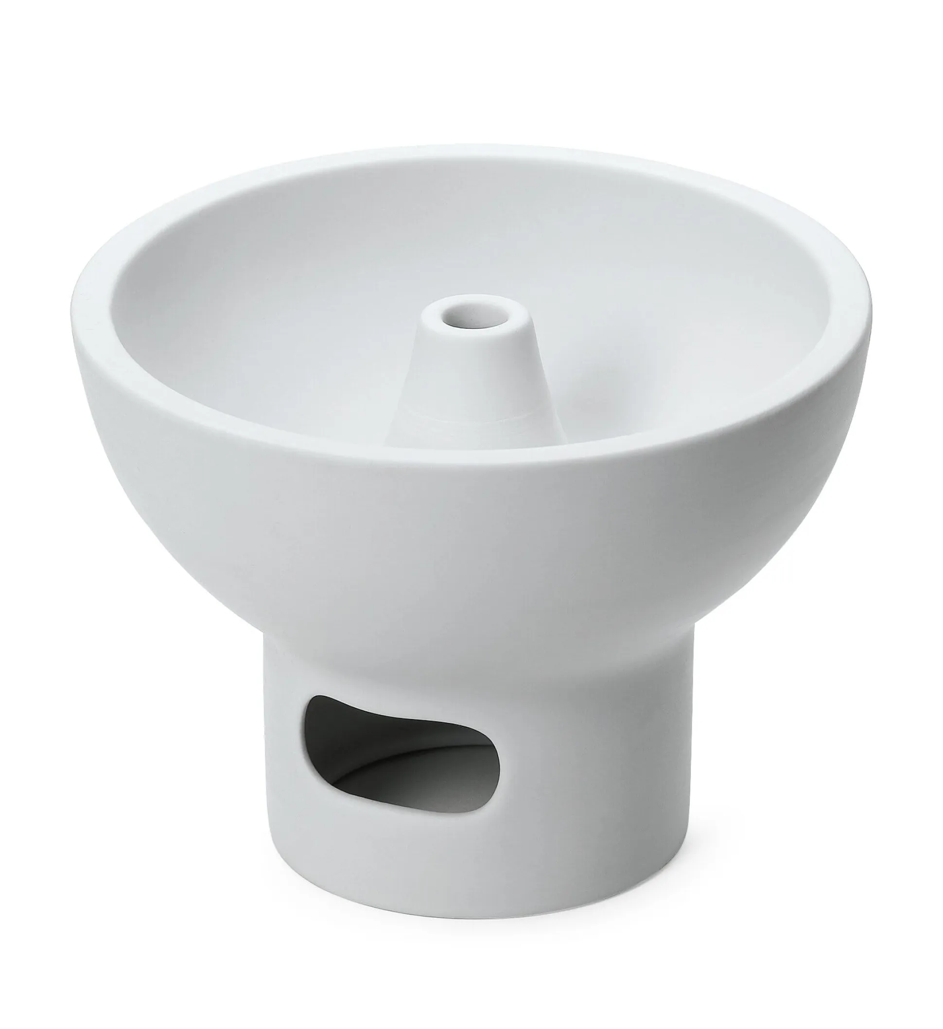 Unglasiertes, transluzentes Porzellan. Reinigung mit Zitronensäure oder Essigessenz. Höhe 9,5 cm, Ø 12,5 cm. Gewicht 330 g. Ein gläserner Teelichthalter liegt bei, jedoch ohne Teelicht.