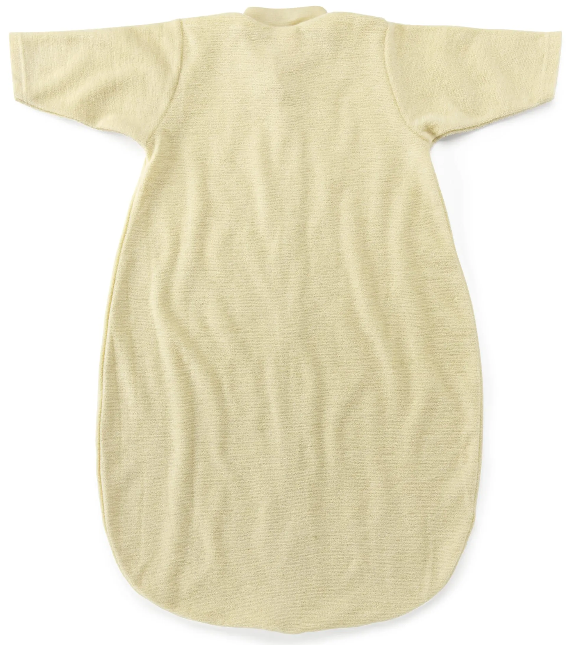 Damit Ihr Baby unbeschwert die Nacht durchträumen kann, wurde für diesen Babyschlafsack die ungefärbte Wolle von Merinoschafen aus kontrolliert biologischer Tierhaltung verarbeitet. Der weiche Merino-Wollfrottee ist wohltuend leicht und wärmt das Baby doch so gut, dass es darin ruhig auch einmal nur einen Body tragen kann. Als feines Schlingengewebe bieten die Merinowollfasern ein besonders hohes Wärmeisolationsvermögen, zusätzlich können sie viel Feuchtigkeit aufnehmen und an die Umgebung ableiten – so entsteht ein angenehmes, trockenes Schlafklima. Insbesondere im Bereich der Beine ist der Babyschlafsack weit geschnitten und räumt viel Bewegungsfreiheit ein, selbst wenn Ihr Sprössling noch im Tiefschlaf zu ausgiebigen Strampeleinheiten und Turnübungen neigen sollte. Der Reißverschluss verläuft über die gesamte Länge, sodass Sie den Schlafsack komfortabel aufschlagen und das Baby hineinlegen können.