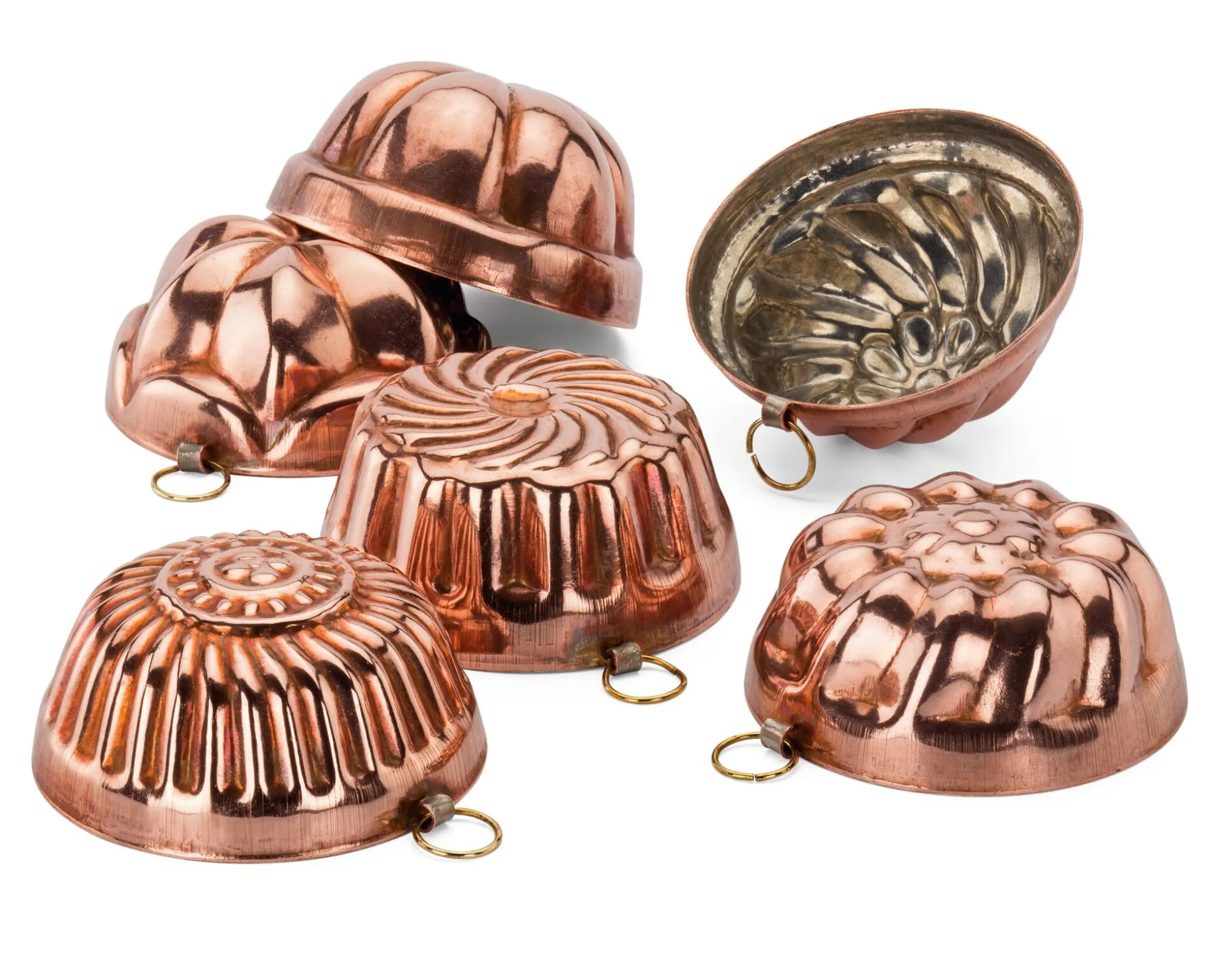 Kleine Küchlein zum Frühstück, Soufflé, Flan oder Pudding (im Wasserbad zubereitet) zum Dessert – in diesen innen verzinnten Förmchen aus Kupfer gelingt das alles, da das Edelmetall die Hitze des Ofens verlustfrei weitergibt. Diese Kupferförmchen kommen aus Süditalien, wir bieten sie zu sechst im Set an.