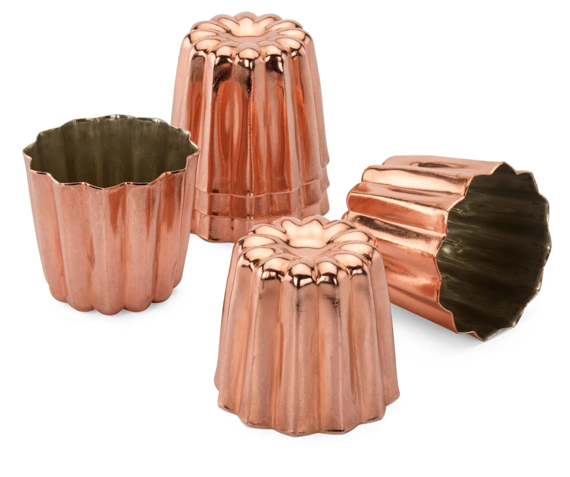 Canelés sind die festlichen kleinen Kuchen aus dem Bordelais mit fluffig-weichem Kern innen und knackender, karamellisierter Hülle außen. Diese besondere Hülle entsteht erst beim Backen in Förmchen wie diesen aus Kupfer, das die Hitze des Ofens unvermindert an das Backgut weitergibt. Unsere Kupferbackformen kommen aus Süditalien. Die Canelé-Formen bieten wir einzeln und zu sechst im Set an.