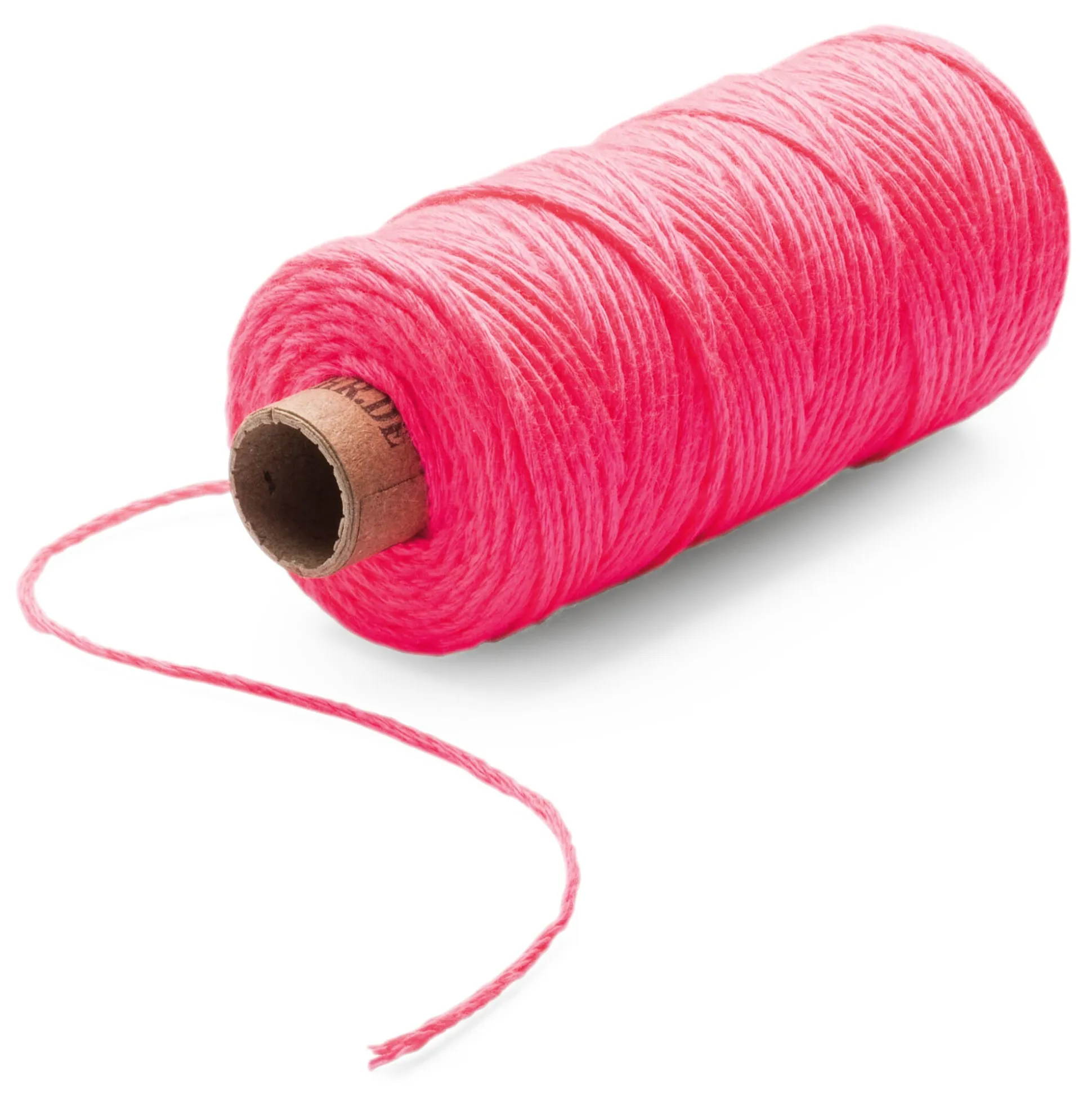 In leuchtenden Farben und aus Polyestergarn gezwirnt: weiches, sogenanntes Bäcker-Garn zum Verpacken, Bündeln, Basteln und vielerlei anderen Zwecken. Das Garn wird aus vier Grundfäden (drei weißen und einem farbigen bzw. vier farbigen bei unifarbenem Garn) gezwirnt.
