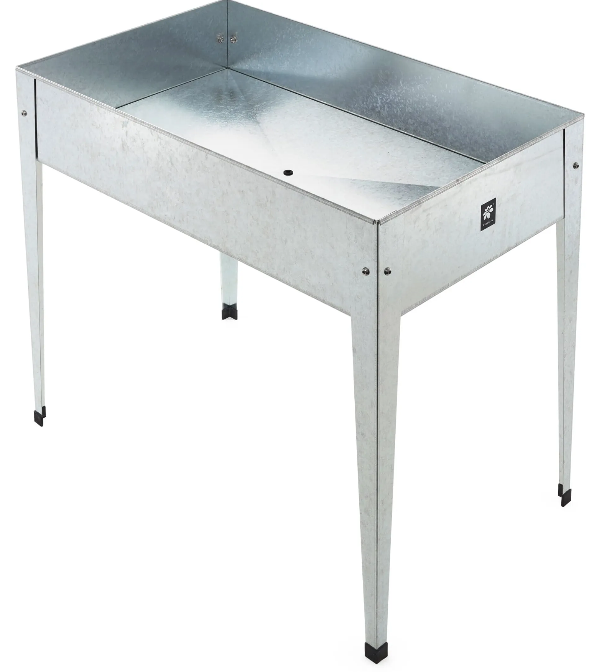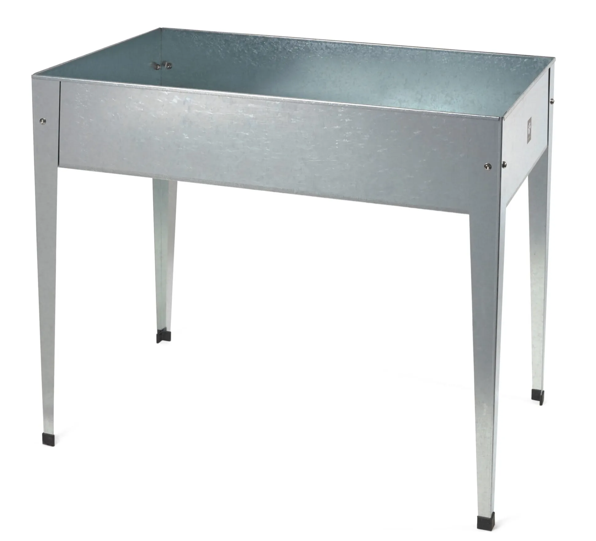 Aus feuerverzinktem Stahlblech, Fußkappen und Stopfen Gummi.