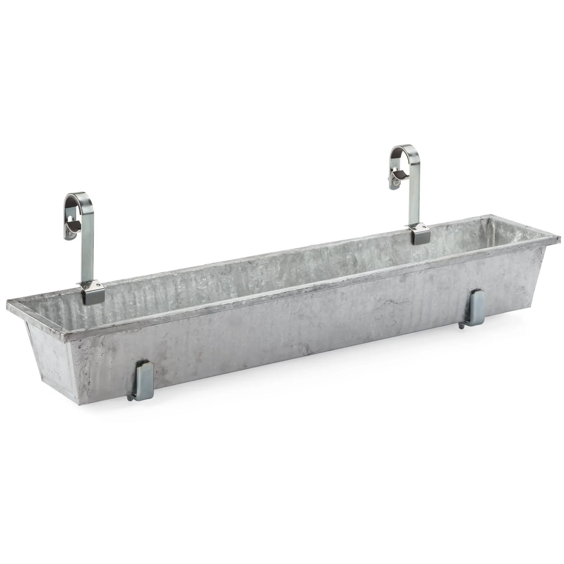 Für Rundgeländer von 2,8 bis 4,6 cm Ø. Stahl, galvanisch verzinkt (Stärke 2,2 mm). Höhe 27 cm, Breite 2,5 cm, Tiefe 13,5 bis 22,5 cm. Gewicht 890 g. Belastungsgewicht pro Paar max. 30 kg. Lieferung ohne Kasten. 1 Paar.