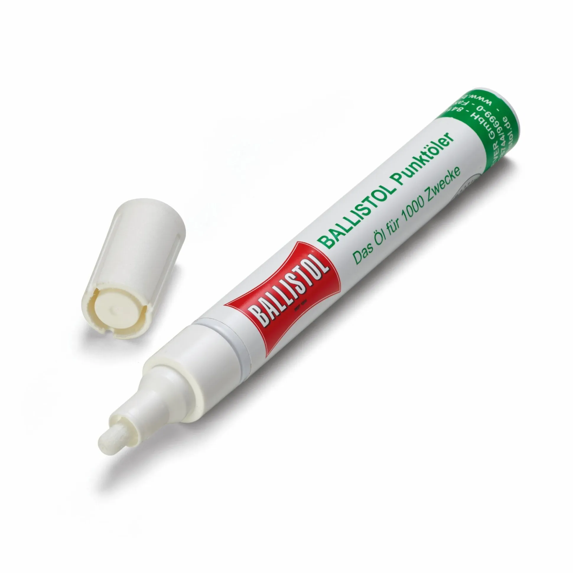 Der Punktöler ermöglicht alle Anwendungen des Ballistol-Universalöls – so einfach wie mit einem Stift – tropfenweise, fein dosiert auf kleinen Flächen oder gezielt nur an einer bestimmten Stelle. Der Punktöler ist bei Bedarf nachfüllbar.