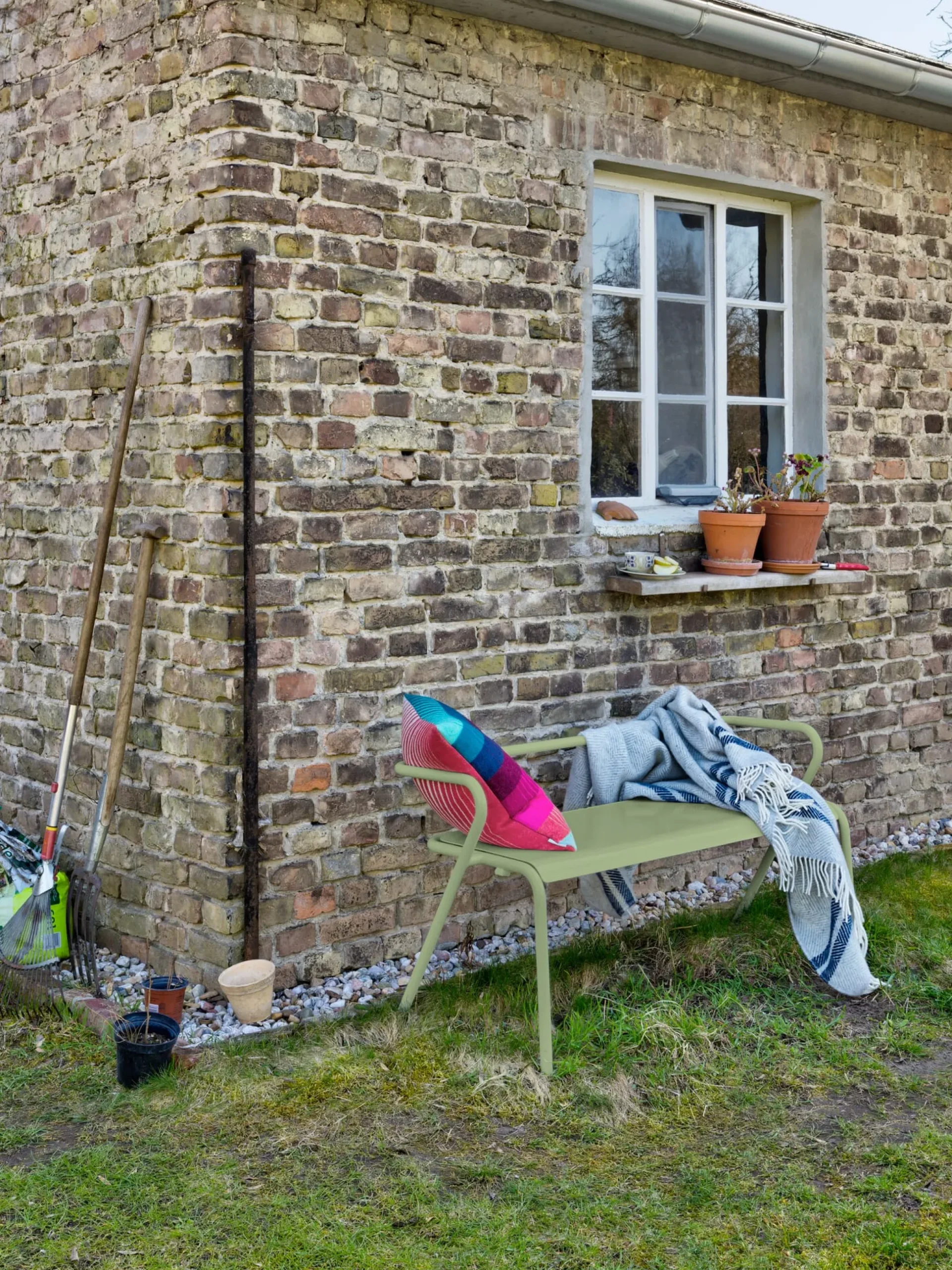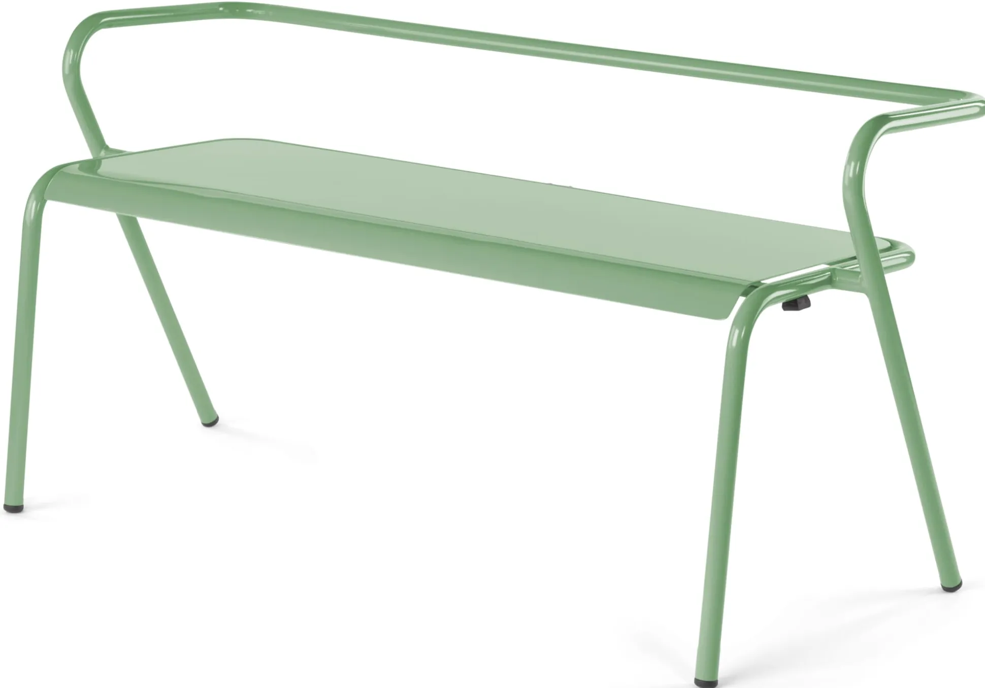 Zweisitzige Bank für Balkon und Terrasse. Die Bank ESTORIL orientiert sich in der Linienführung an dem gleichnamigen Stuhl, ist aber im Gegensatz zu ihm ohne die hohe Rückenlehne ausgeführt. Die Bank ist wetterfest und kann somit das ganze Jahr über im Freien bleiben.
