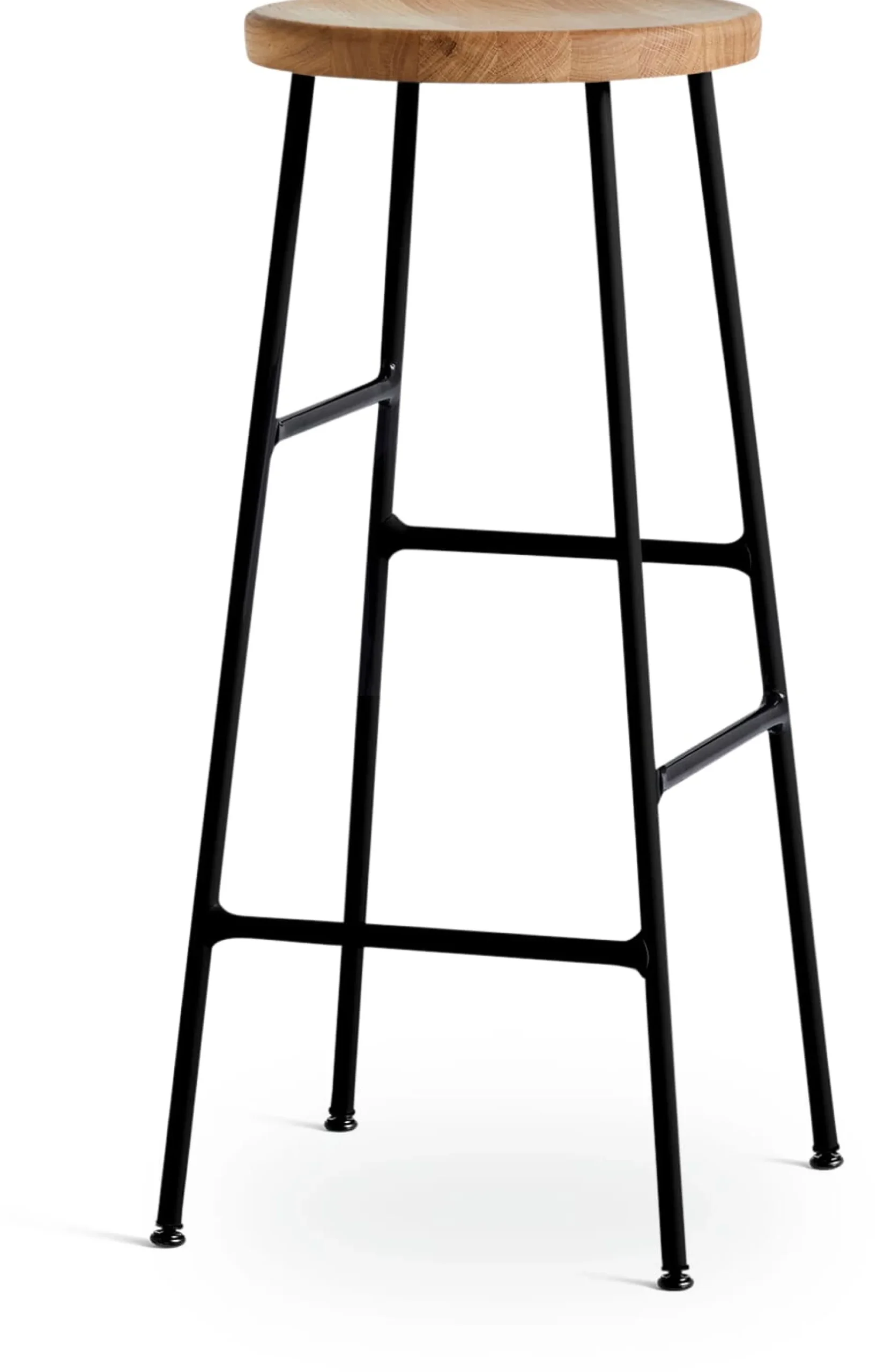 Ein simples Ding – auf den ersten Blick. Die CORNET Barhocker besitzen einen massiven Holzsitz und ein Stahlrohrgestell mit zwei bemerkenswerten Details: Die waagerechten Streben sind an allen vier Seiten in unterschiedlicher Höhe gesetzt. Die Verarbeitung ist genauso besonders, denn die Stahlrohrverbindungen werden in einer speziellen, aus der Automobilproduktion übernommenen Technik gesetzt, bei der die Werkstücke von innen verschweißt werden. Dadurch fügen sich die Metallstreben mit interessanten Verarbeitungsdetails sehr schön zusammen.
