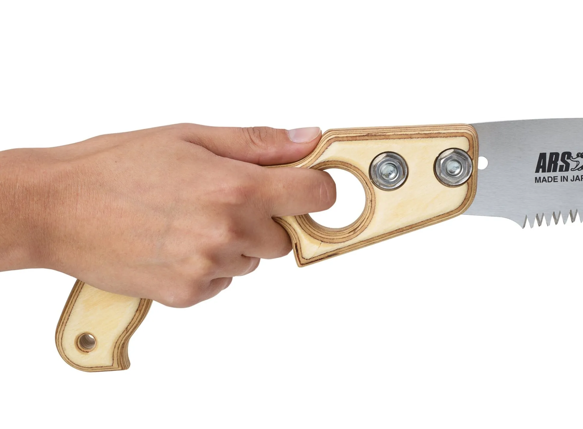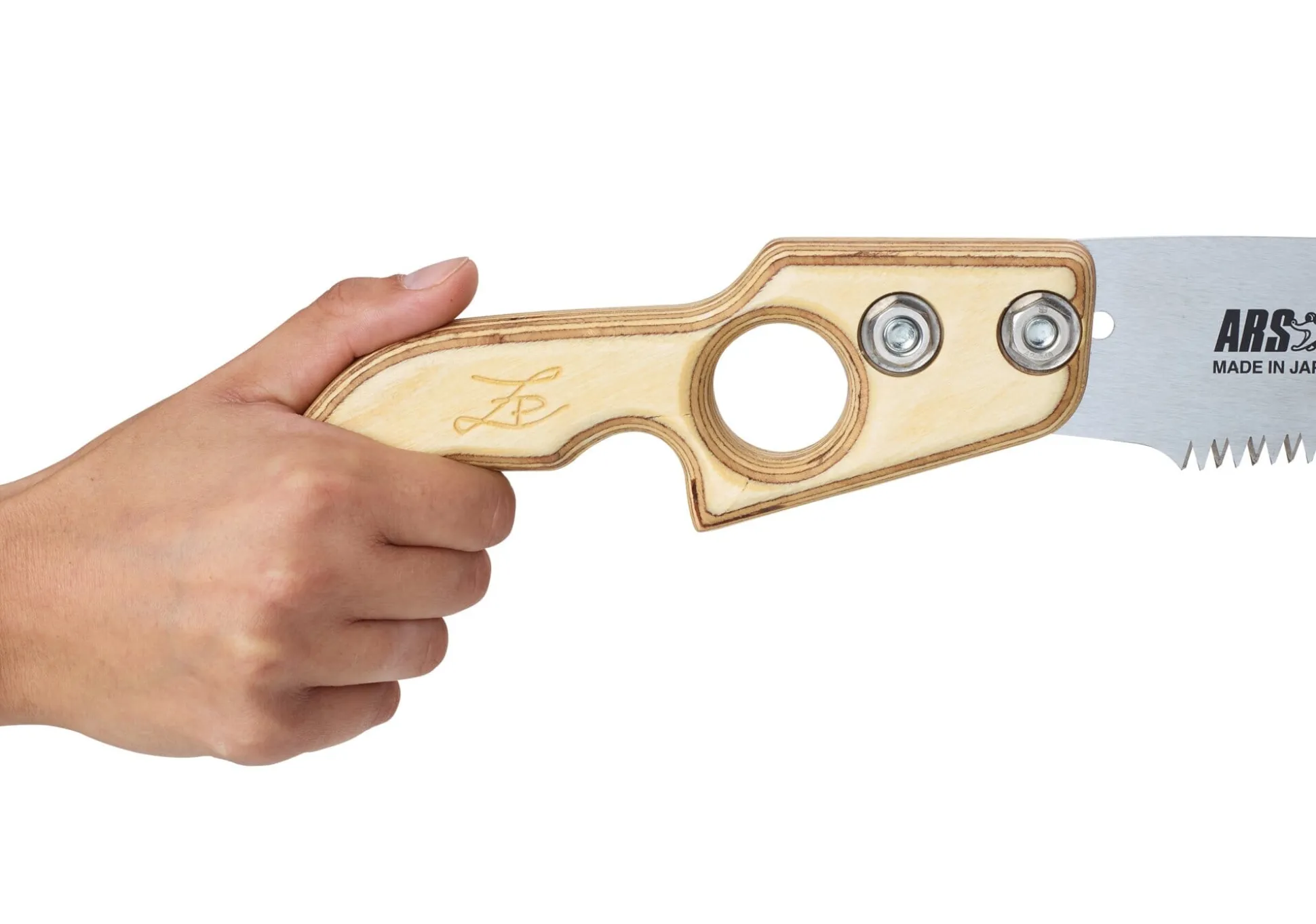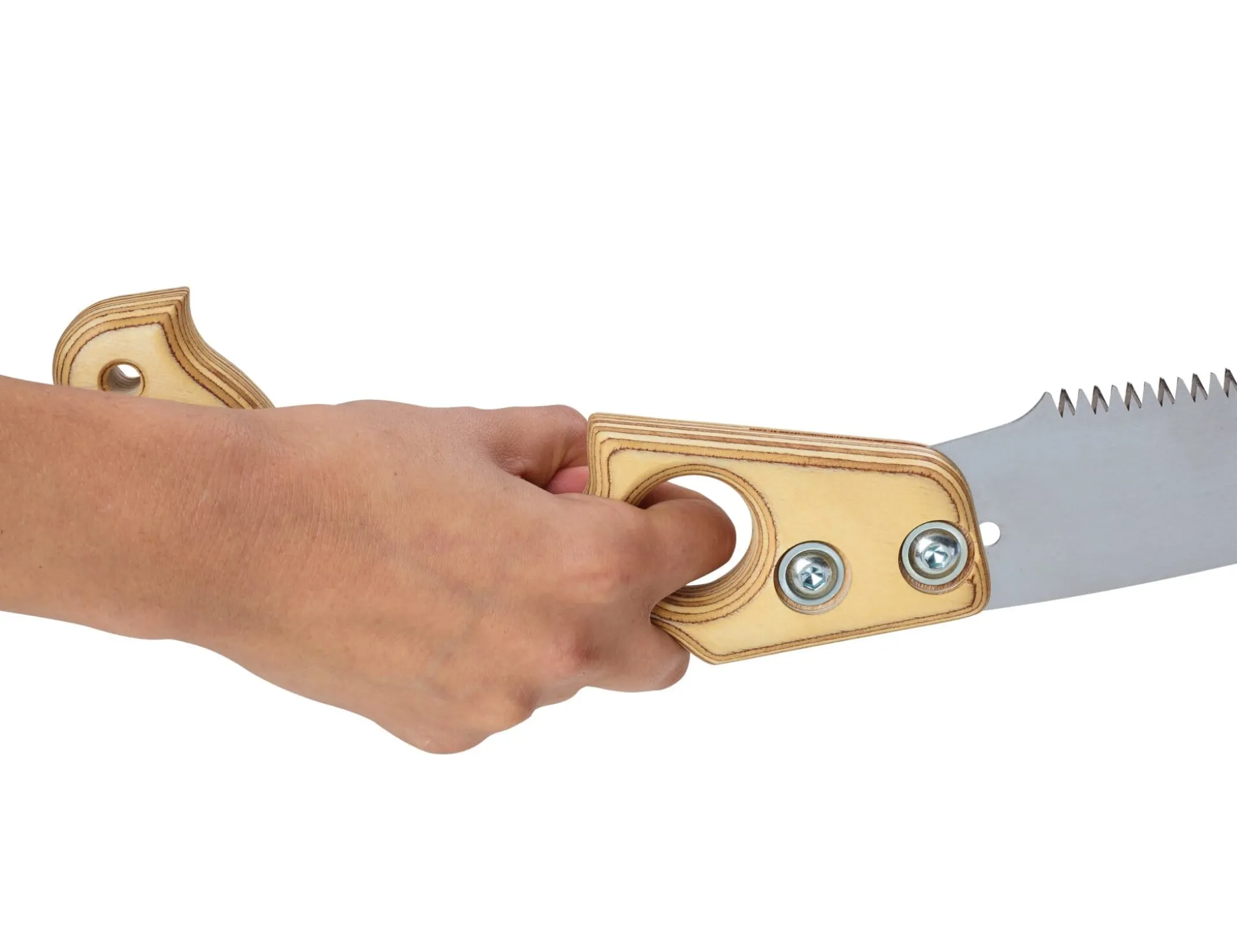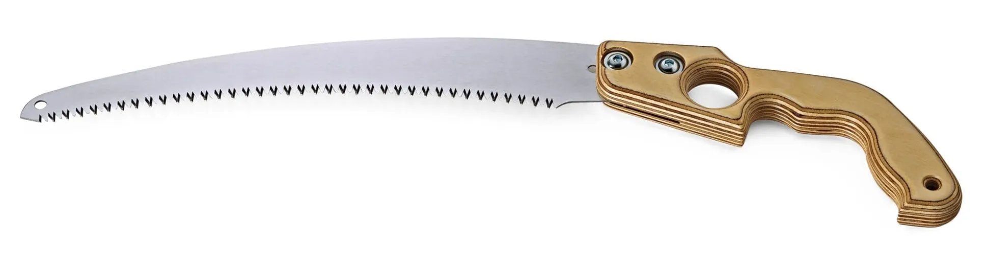 Sägeblatt aus Kohlenstoffstahl, hartverchromt. Griff aus Birkenschichtholz, geölt. Hergestellt in Japan.