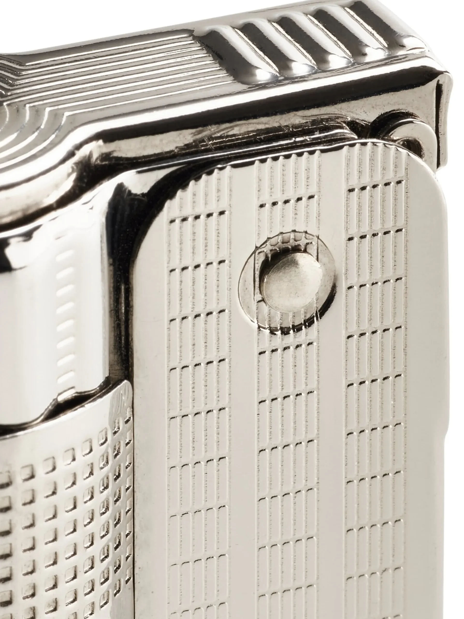 Stahl, vernickelt. Länge 2,9 cm, Breite 1,8 cm, Höhe 6,2 cm. Gewicht 38 g. Lieferung in einer Geschenkbox.