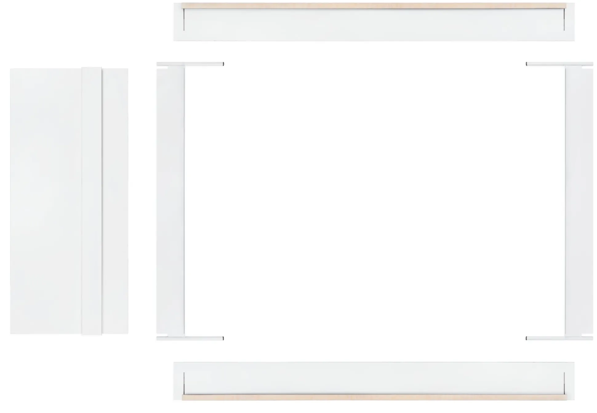 Material: Birke Multiplex (Herkunft: Osteuropa), 18 mm, beidseitig weiß melaminharzbeschichtet (bei den aus dem Karosseriebau stammenden Multiplexplatten sind Farb- und Strukturunterschiede sowie vereinzelt kleine Druckstellen möglich), Gestell: Stahlblech und Stahlrohr, pulverbeschichtet (Lichtgrau RAL 7035)