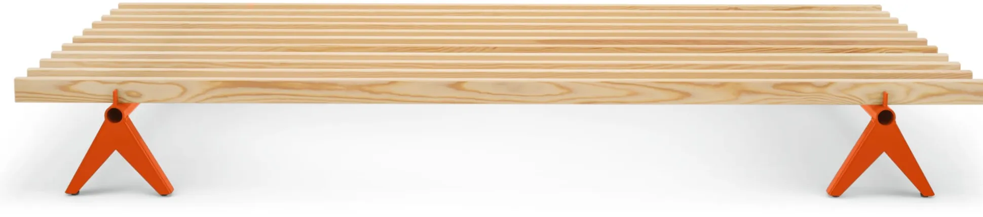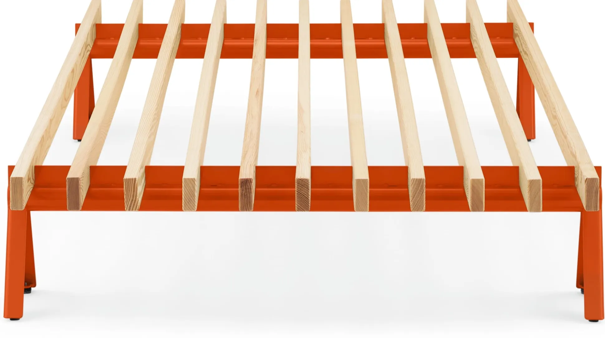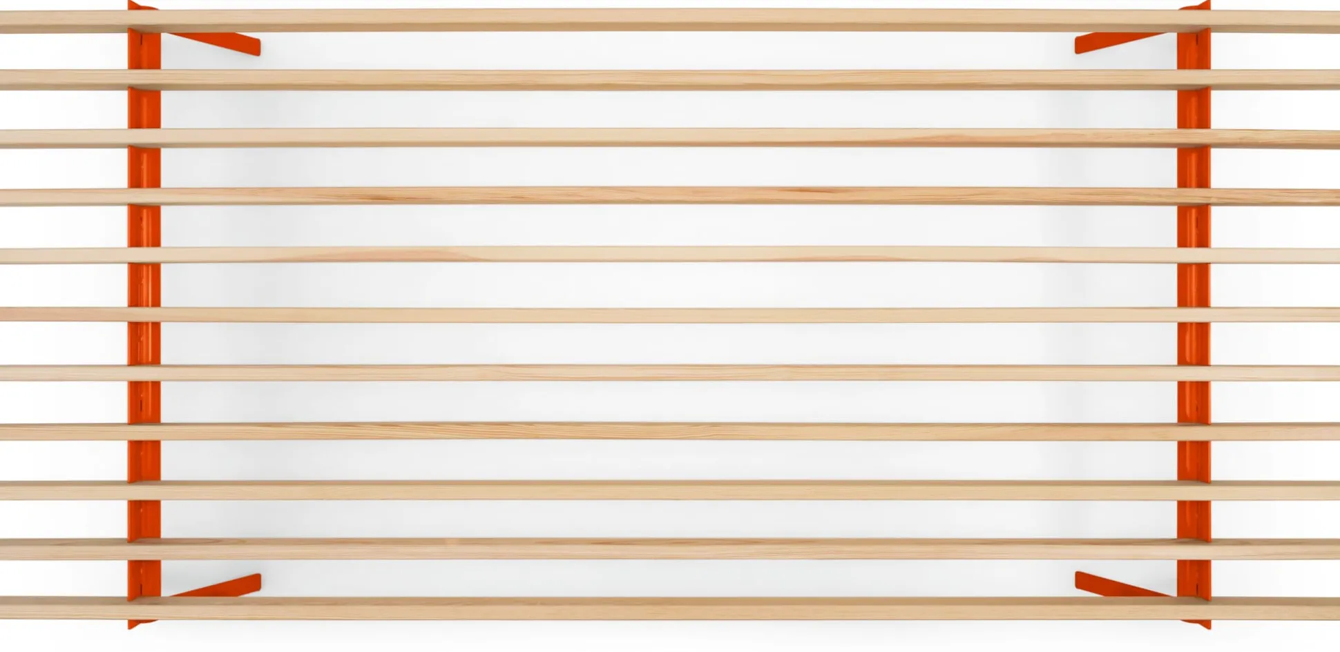 - Latten aus massivem Kiefernholz auf zwei stabilen, gezahnten Stahlträgern