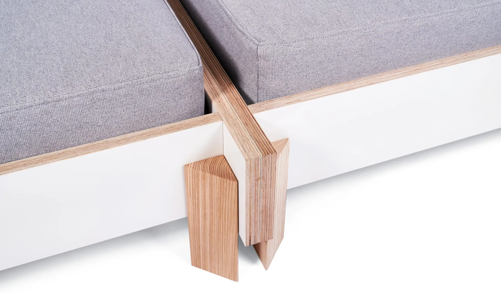 - Gestapelt als Kastenbett und Sofa, nebeneinander für breite Schlafgelegenheit