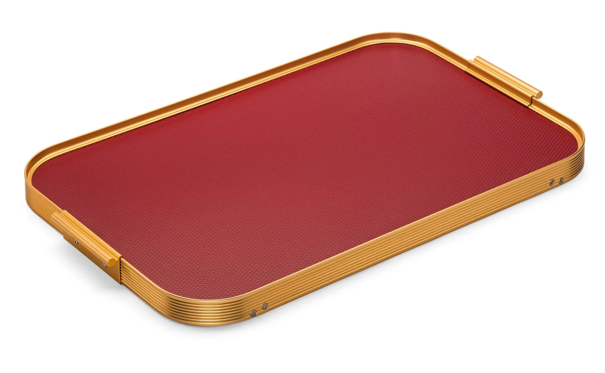 Seit 1947 produziert der Londoner Hersteller Kaymet Tabletts und Servierwagen aus Aluminium, die vor allem in Hotels, Krankenhäusern und der Gastronomie Verwendung finden. Das markanteste Merkmal der in einen Rahmen aus Aluminiumprofilen eingefassten Tabletts ist die rautiert strukturierte, farbig eloxierte Oberfläche des Bodens. Diese befördert die Stabilität des Tabletts, soll die Rutschfestigkeit erhöhen und kommt bei den helleren Farbvarianten besonders gut zur Geltung.