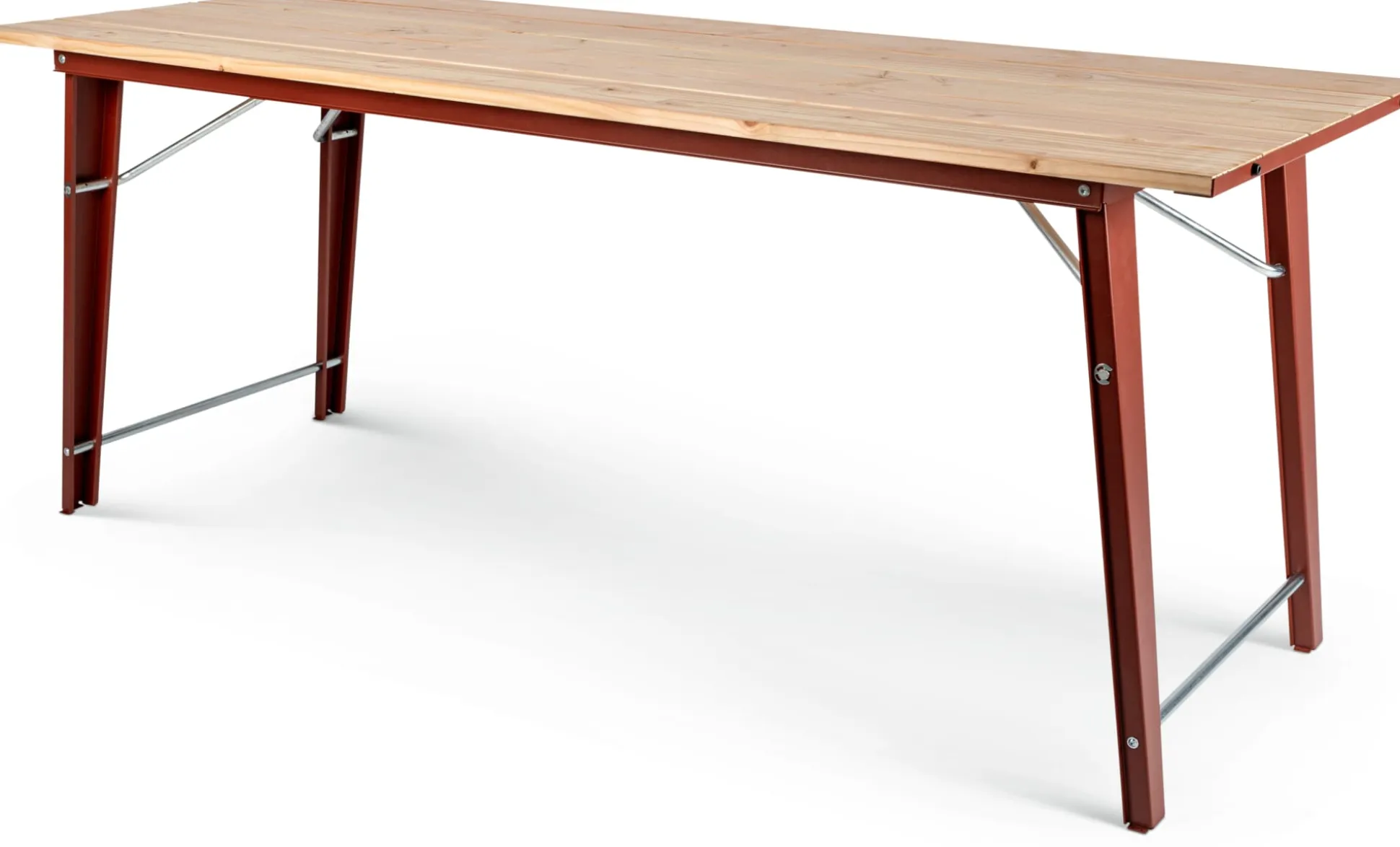 Material: Stahl, pulverbeschichtet (RAL 3009 Oxidrot); Lärche (Herkunft: Polen)