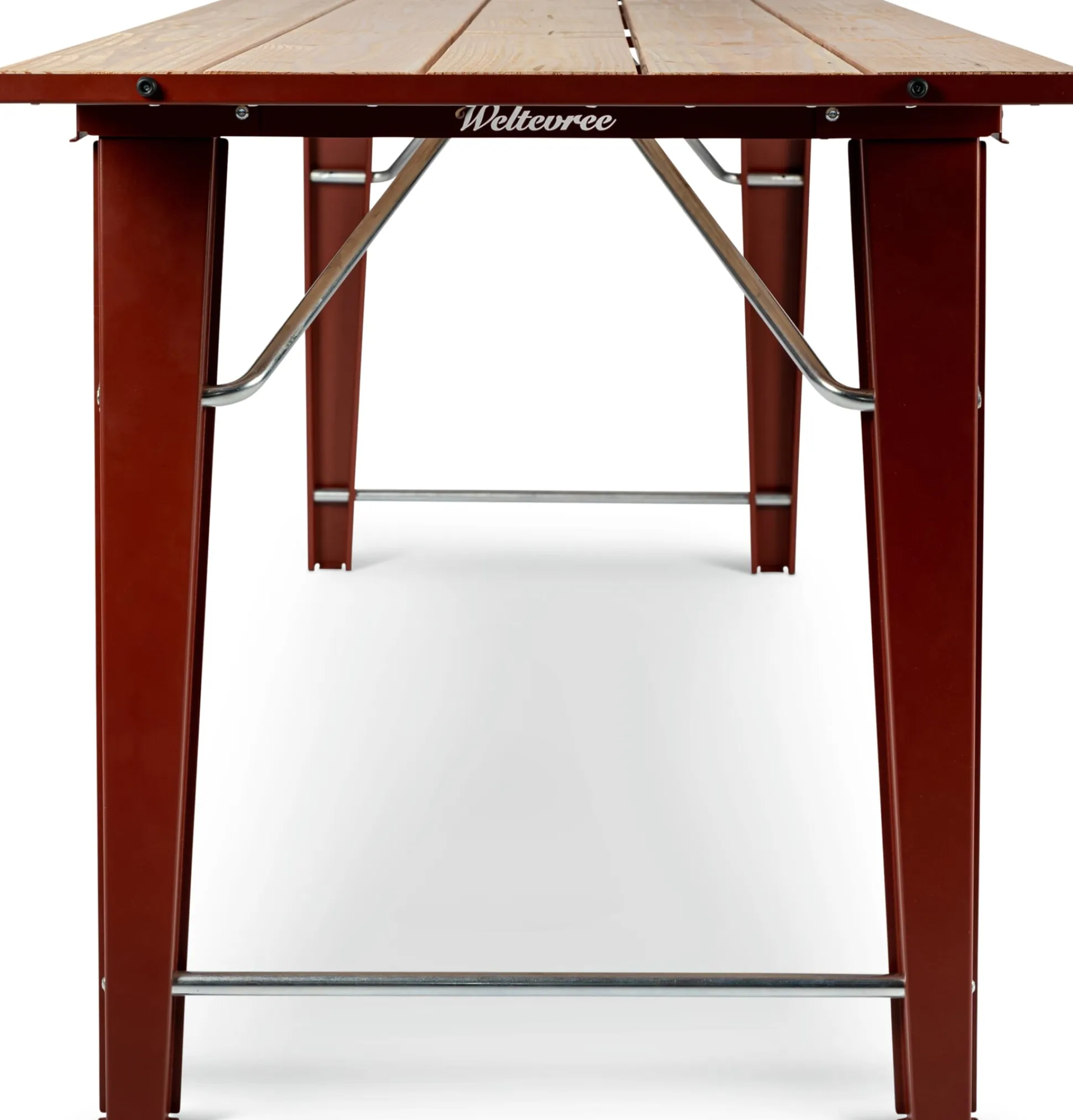 Endlich eine zeitgenössische Interpretation und Optimierung der klassischen Bierzeltgarnitur! Biertisch und Bierbank, nur besser, sozusagen. Die Gestaltung ist neu – die Tugenden des bewährten Möbeltyps bleiben: SALUT ist stabil gebaut, mit robusten Gelenken zum Zusammenklappen ausgestattet und gut lager- und transportfähig.