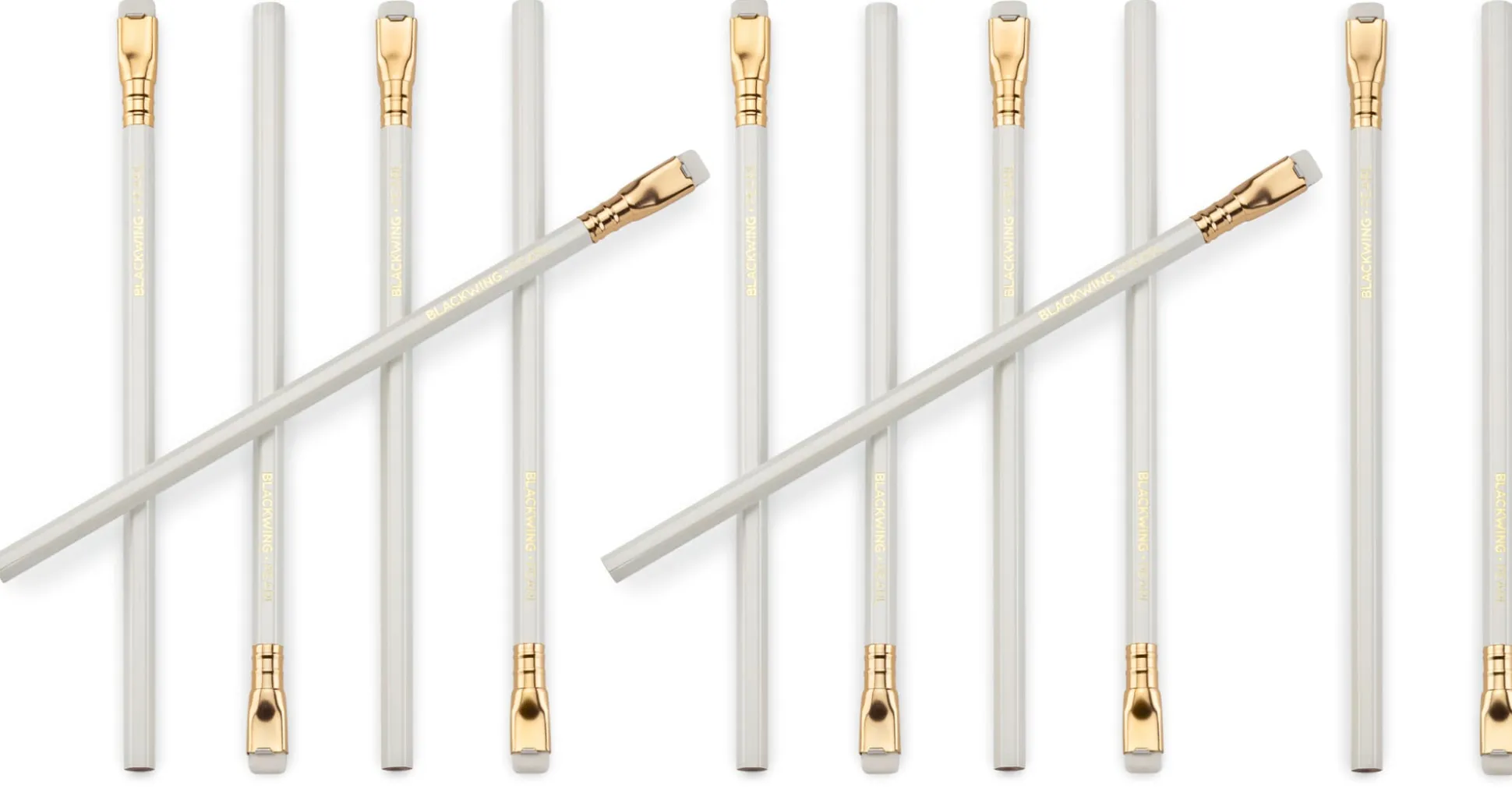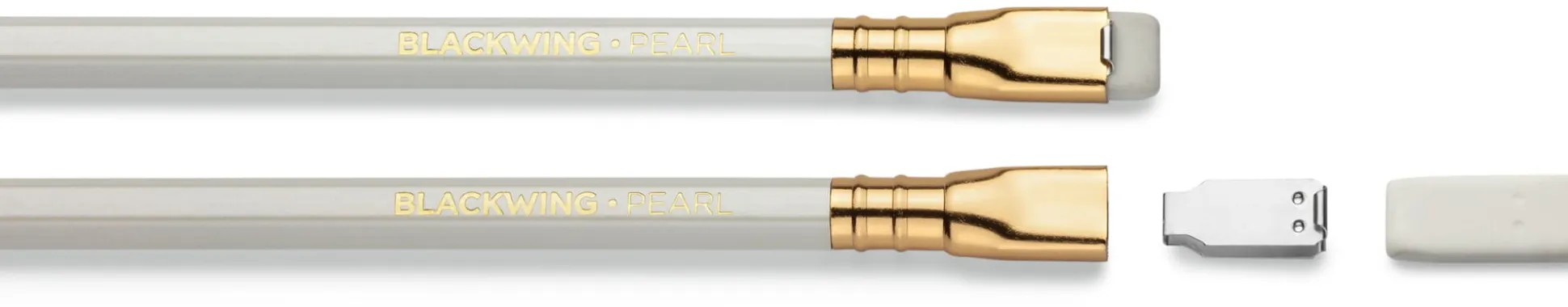 Blackwing Pearl: weißer Schaft, weißer Radierer. Härte ca. 4B. Weicher, tonsatter Strich, zum Schreiben und Freihandzeichnen.