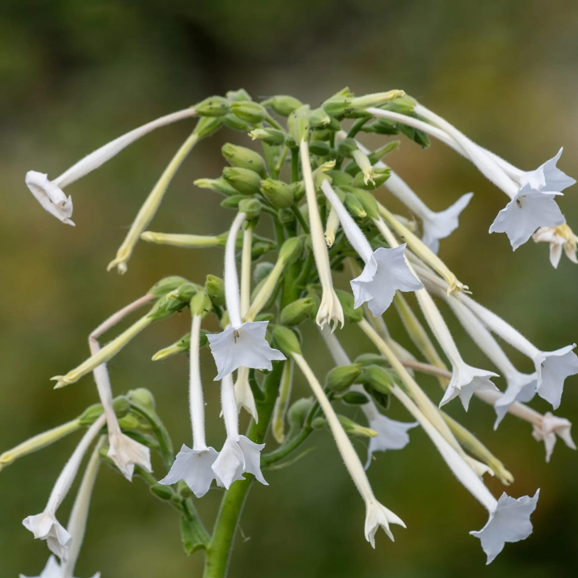 Einer der schönsten Ziertabake mit relativ großen, gezackten Blüten, die in den Dämmerungs- und Nachtstunden einen herrlichen Duft nach Nelken und orientalischen Gewürzen verströmen – so intensiv, daß er den Garten weit durchdringt. Die Pflanze kann bis 2 m hoch werden und blüht von Juni bis Oktober. Die Wurzeln werden im Herbst ausgegraben und wie Dahlienknollen überwintert.