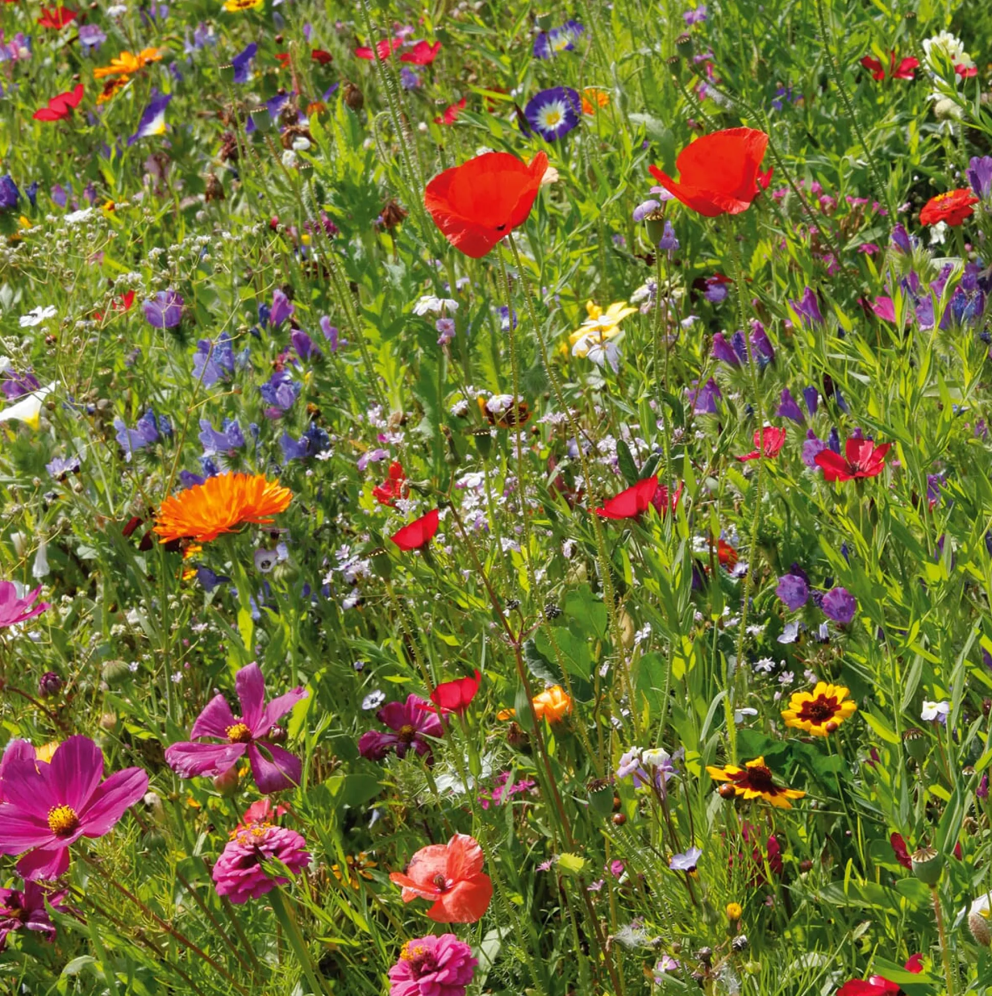 Mischung einjähriger Sommerblumen, bestehend aus 52 Arten. Inhalt 30 g. Ausreichend für eine Fläche von 6 qm. Die nötigen Angaben zu Aussaat und Pflege befinden sich auf der Packung.