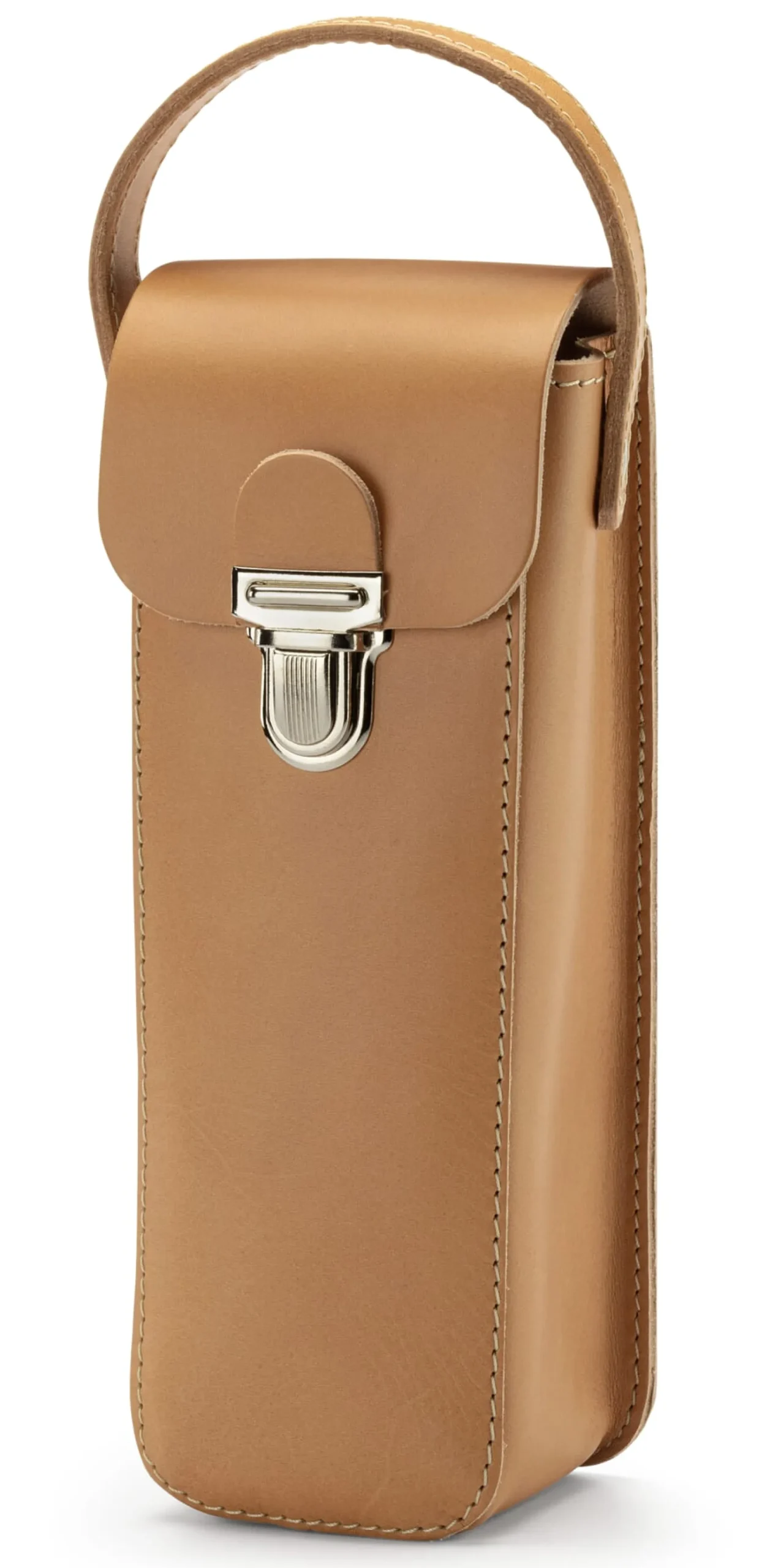 Rindleder, vegetabil gegerbt. Mit Trageschlaufe und Schnappverschluss. Hergestellt in Deutschland.
