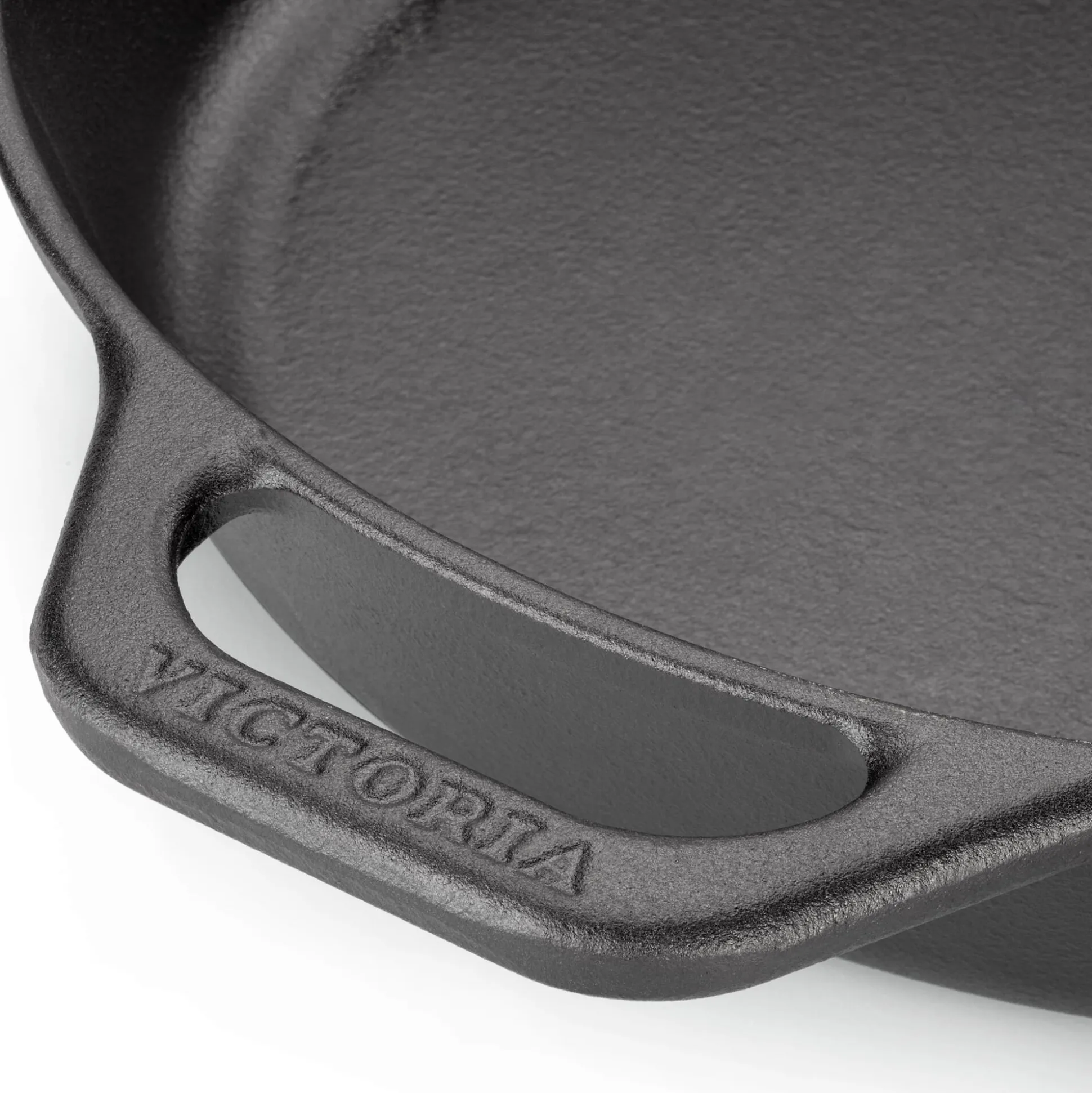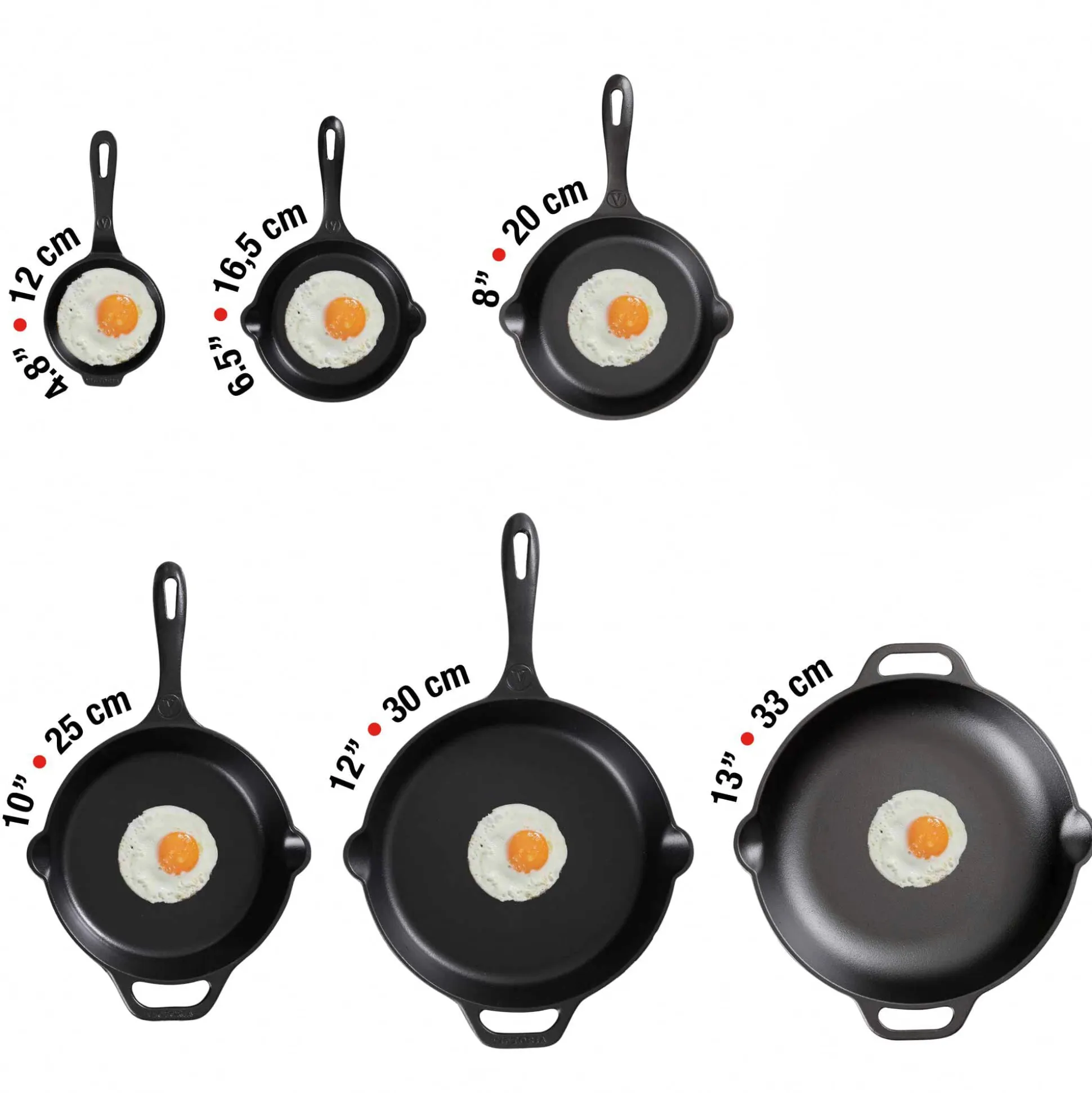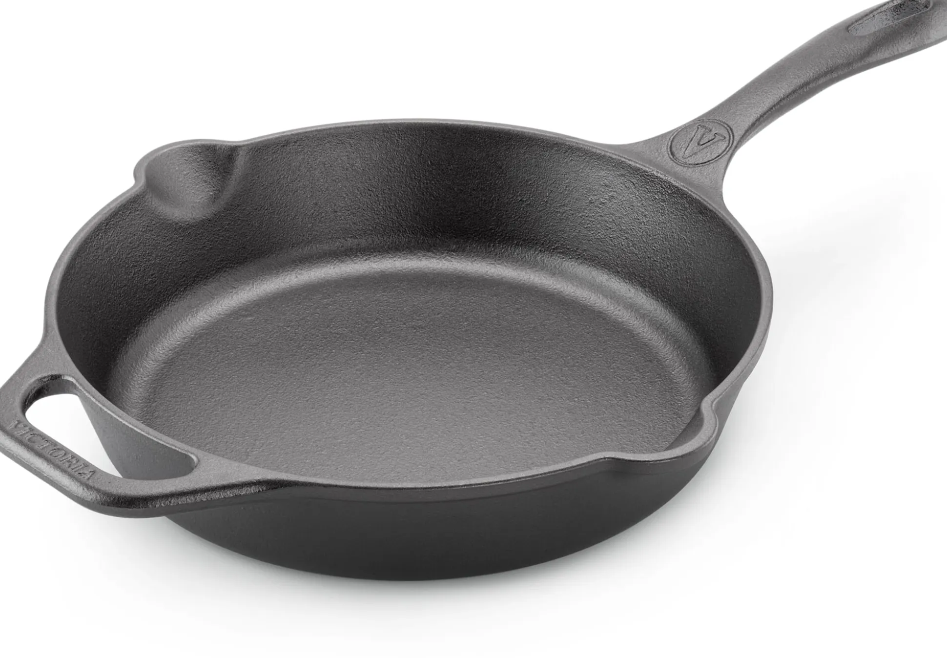Bei Pfannen geht (fast) nichts über Eisen. Denn, wir zitieren uns selbst: „Eine Bratpfanne muss man sehr hoch erhitzen können, und sie muss die Hitze möglichst unvermindert an das Bratgut weitergeben.“ Kaum einem Material gelingt das besser, und die folgende massive, gusseiserne Pfanne von Victoria in Kolumbien tritt einmal mehr den Beweis an. Genau das ist schließlich ihr Talent: Zugeführte Wärme verteilt sie auf Dauer gleichmäßig und kann hohe Temperaturen auch über längere Zeit konstant halten. Heizen Sie Ihre gusseiserne Pfanne immer gut vor, dann erhält kurzgebratenes Fleisch seine krosse, dunkelbraune, aromatische Kruste, und Gemüse nimmt beim Rösten in etwas Öl oder Butter Geschmack an, bleibt aber wie im Wok bissfest, knackig und frisch. Tipp: Sie können diese Pfanne auch auf dem Grill verwenden. Achten Sie aber darauf, sie nach jedem Einsatz gleich trocken auszuwischen, und bewahren Sie darin keine gegarten Lebensmittel länger auf, damit die gusseiserne, durch Brünieren vorbehandelte Oberfläche nicht beschädigt wird.