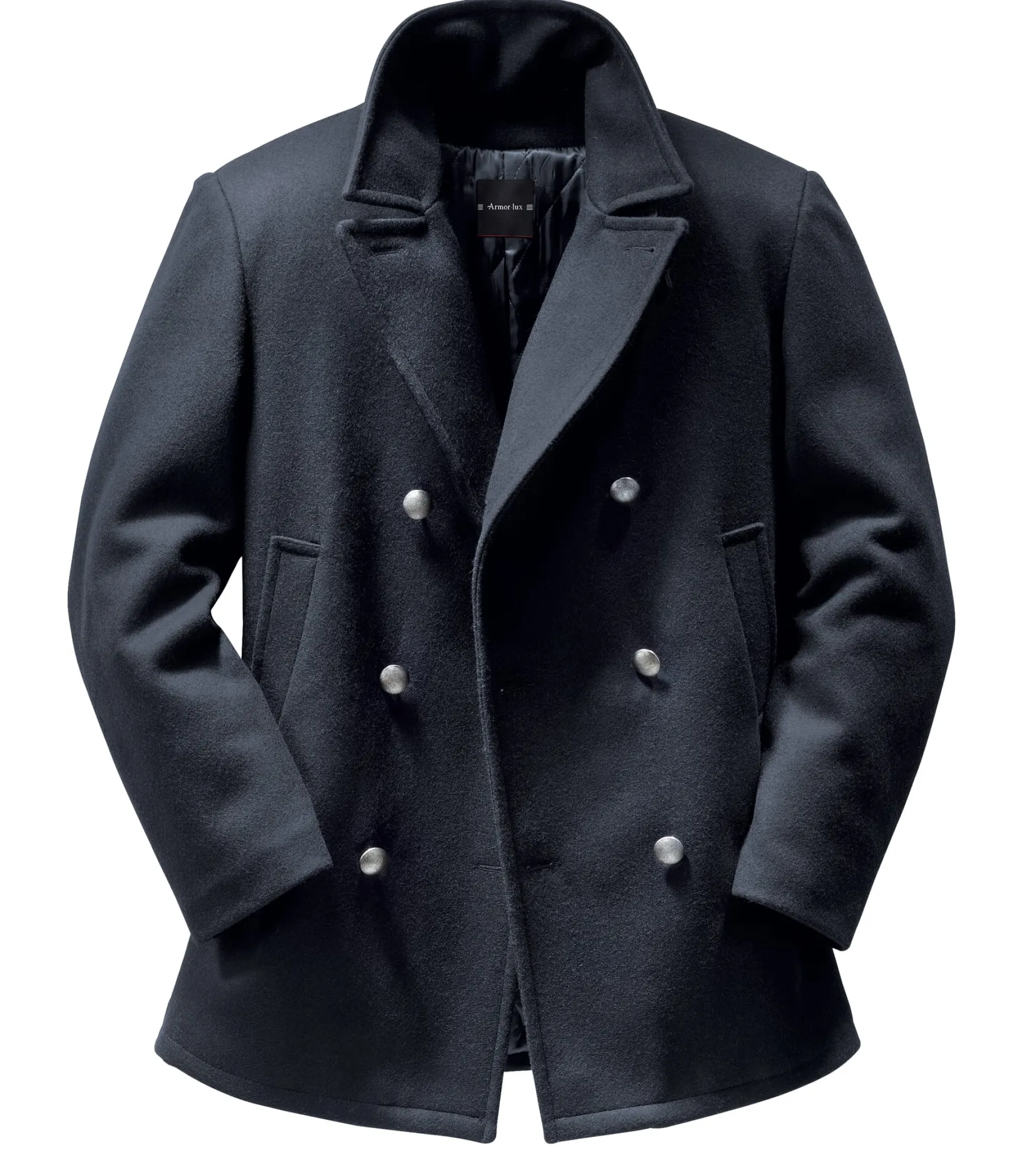 Seit Jahrhunderten ist der Kaban die Arbeitsjacke der bretonischen Fischer. Erst seit dem frühen 19. Jahrhundert wird die ursprünglich weiße Jacke (bretonisch: kap gwenn, weißer Stoff) jedoch blau gefärbt. In dieser Form eroberte der Kaban die Kriegs- und Handelsflotten Europas und wurde so das maritime Kleidungsstück schlechthin. Armor lux in Quimper produziert ihn exklusiv für uns noch in Frankreich und ausschließlich aus Naturmaterialien: als Oberstoff kommt ein mittelgewichtiges, dicht gewebtes Tuch aus reiner Wolle zum Einsatz und für das Innenfutter reine Viskose, die mit einem Baumwollvlies unterlegt und rautenförmig abgesteppt ist. Der gerade geschnittene Kaban ist mit hoch zu schließendem Reverskragen mit knöpfbarem Sturmriegel gearbeitet; er wird mit drei Paaren metallener Uniformknöpfe geschlossen, wie sie für diesen Typ Jacke seit jeher verwendet werden. Zwei seitliche Schubtaschen und zwei Innentaschen mit Metallreißverschluss nehmen Kleinteile des täglichen Bedarfs auf.