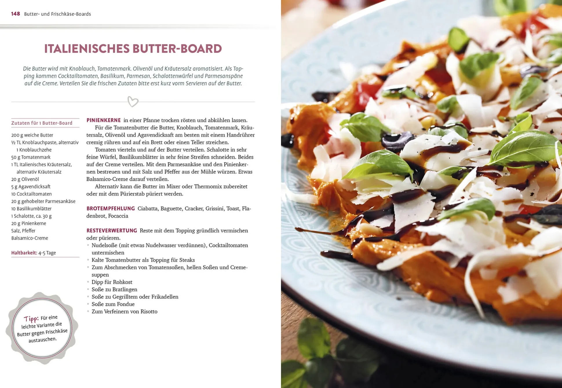 Kein Brot ohne Aufstrich! Ob vegan, veggie, mit Fisch, süß oder wunderschön angerichtete Butter Boards (der neuste Foodtrend erstmals in einem Buch) – in diesem Rezeptebuch mit über 60 Rezepten finden Sie eine riesige Auswahl an selbstkreierten Brotaufstrichen für jeden Geschmack und jeden Tag. Bestsellerautorin Valesa Schell gibt zudem zu jedem Rezept eine Brotempfehlung und viele Tipps, wie man die Aufstriche (& -reste) weiterverwerten kann wie Pastasoßen, Dips oder Flammkuchen-Streiche. Als nützliches Extra finden Sie im Buch außerdem viele Anleitungen für die veganen Grundlagen wie Käse, Jogurt etc., mit denen im nächsten Schritt schmackhafte vegane Aufstriche kreiert werden können.