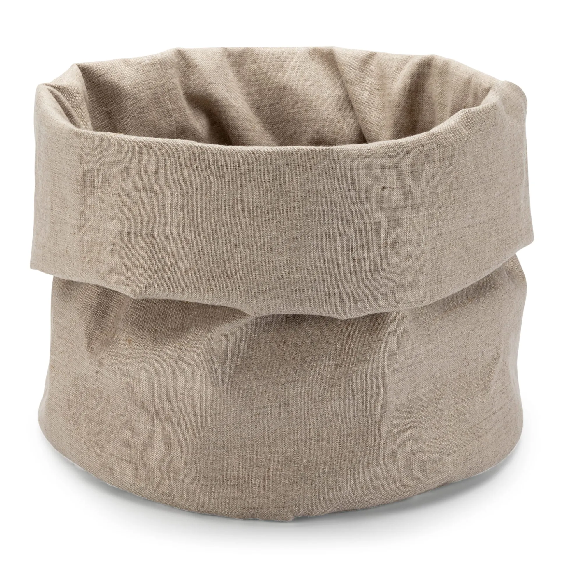Als überaus praktisch erweist sich dieser Brotbeutelkorb aus zweierlei Gründen: Zum einen ist er aus einem festen Leinengewebe gearbeitet, das für den Gang zum Bäcker und die Aufbewahrung von Brot und Brötchen besonders geeignet ist. Leinen kann viel Feuchtigkeit aufnehmen und auch wieder abgeben, sodass es für ein perfektes Mikroklima im Brotbeutel sorgt und das Brot lange frisch und saftig hält. Da Flachs kein tierisches Eiweiß enthält, ist es weniger anfällig für Schimmelpilz. Die Leinenfasern haben außerdem eine sehr glatte Oberfläche, an der Schmutz und Bakterien kaum haften bleiben. Dadurch ist Leinen wenig schmutzanfällig und es lässt sich leicht reinigen. Es ist von Natur aus antistatisch und zieht somit ohnhin keinen Staub an.