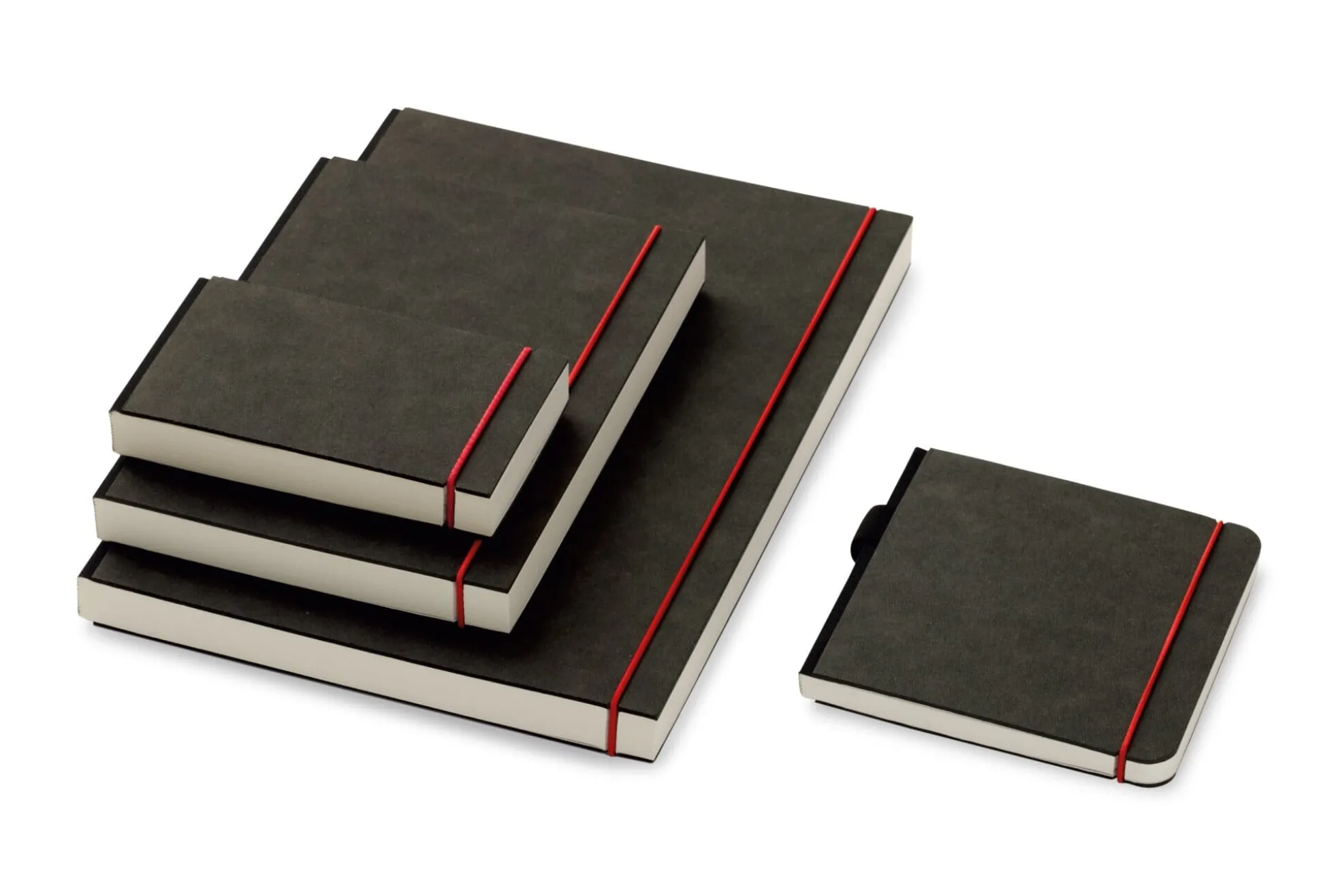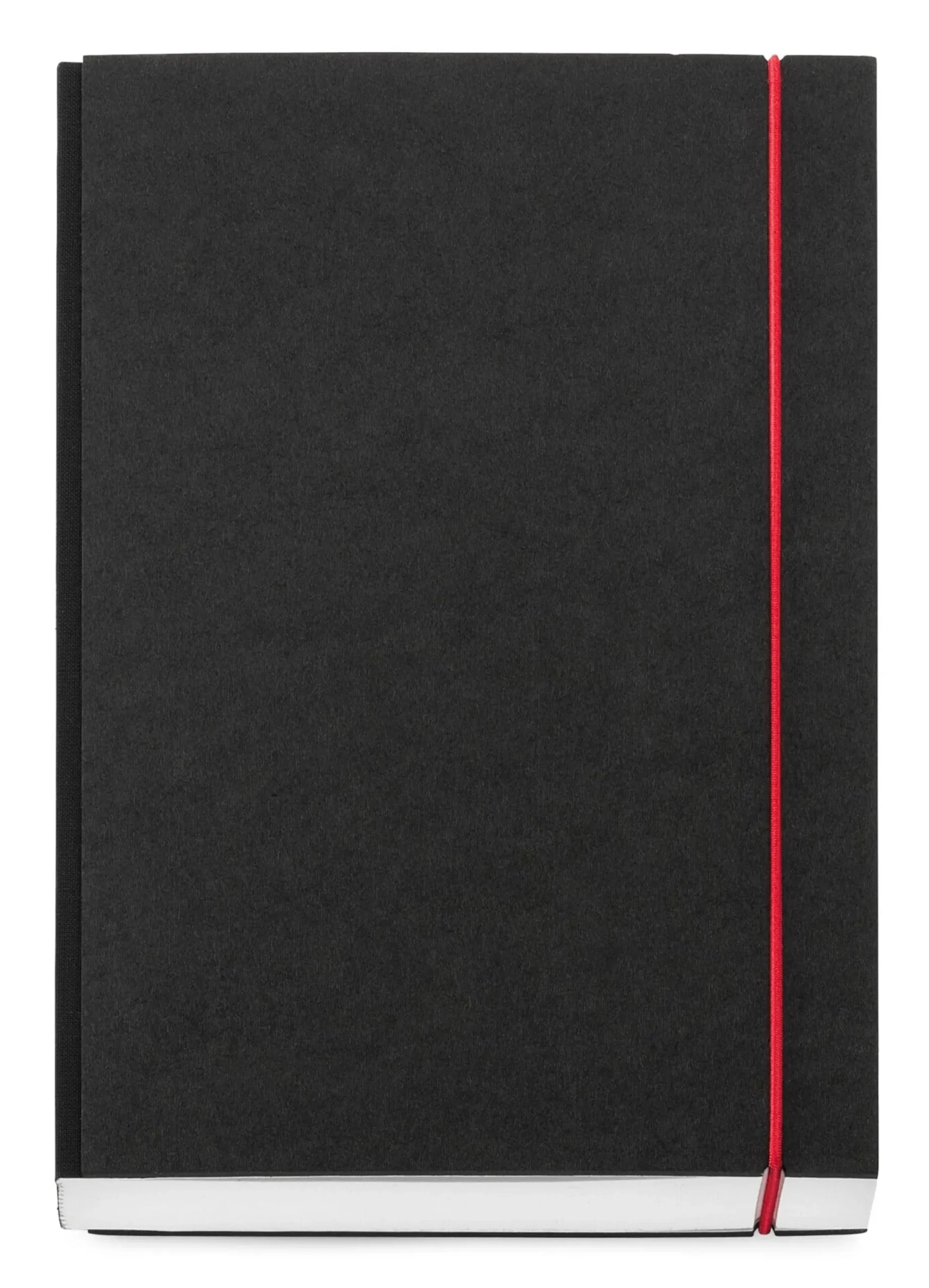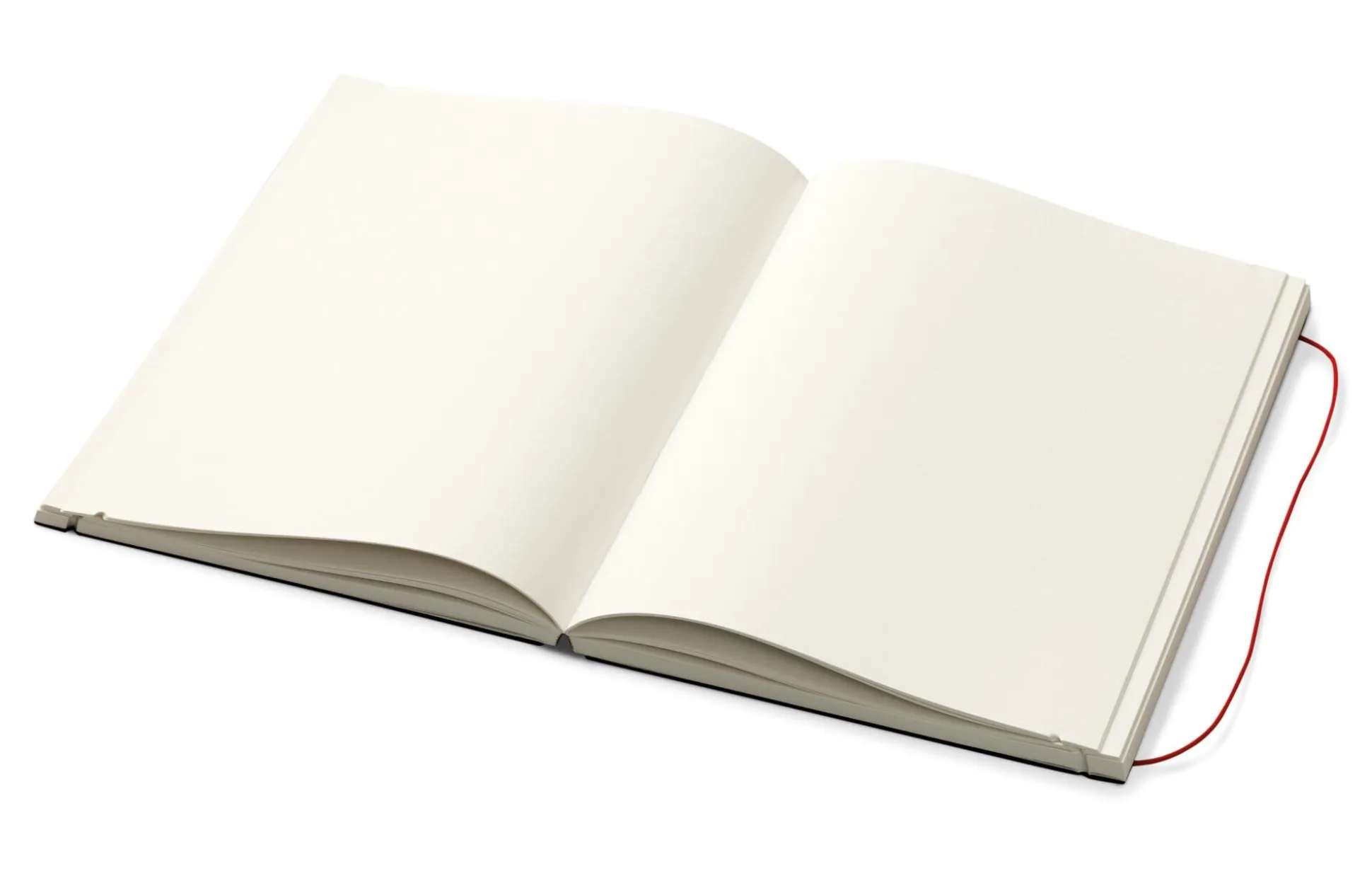 Gebundene Bücher, fadengeheftet: hochwertige reinweiße Buchblock-Papiere mit Perforierung im Bund, mit rotem Rundgummi von Splinten gehalten.