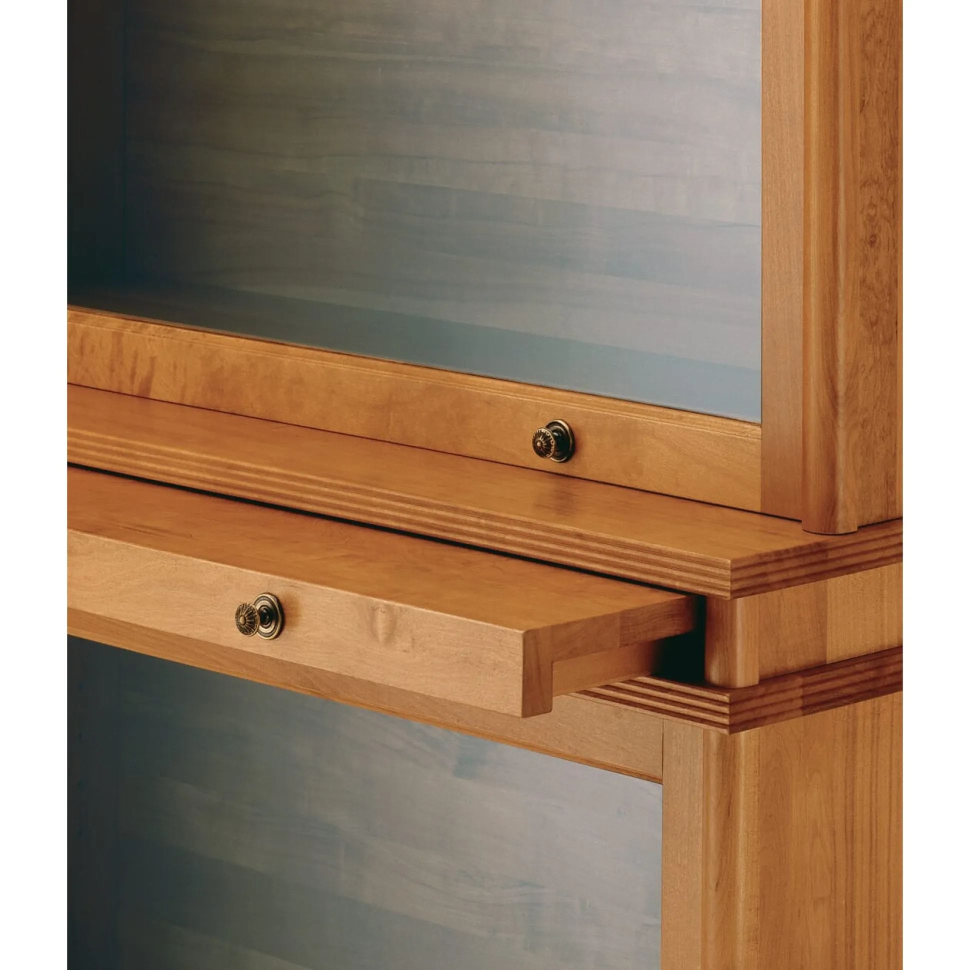 Er ist wohl der erste industrielle Anbauschrank und damit das erste Systemmöbel. Entwickelt wurden die Bauteile Ende des 19. Jahrhunderts als „elastic book case“ von der Firma Globe-Wernicke in Cincinnati. 1896 wurde das Möbel in England patentiert und dort von der Firma Shannon Registrator hergestellt. Die Engländer benutzten die mit Decken eingepackten Schrankteile auf Auslandsmissionen als „Elefanten-Packtaschen“ für ihre Bücher. Hergestellt und mit großem Erfolg verkauft wurde der Registrator dann seit den 1920er Jahren von den Tischlereien der Gebrüder Aug. Zeiss & Co. in Berlin. Wir lassen das Registrator-Schranksystem exklusiv für uns wieder bauen – in einer Möbelschreinerei in Württemberg. Gefertigt wird es aus massivem Holz, und zwar dem der Feuerlandkirsche (gebeizt und seidenmatt lackiert). Diese zu den Harthölzern zählende Scheinbuchenart wächst im südlichen Südamerika (unsere in Chile) in ausgedehnten Beständen. Ihr Holz zeigt eine lebhafte Maserung. Der Shannon-Registrator ist ein echtes Systemmöbel, mit dem sich viele Einrichtungsideen verwirklichen lassen. Seine Elemente können Sie nach Ihren Wünschen zu unterschiedlichsten hochfunktionalen, auch raumfüllenden Einrichtungslösungen zusammenstellen: als Schrank- und Bücherschranksystem für Wohnzimmer oder Büro, als Anrichte, Kommode und Büffet für Küche, Wohn- und Esszimmer und vieles mehr. Sie können sie mit Ergänzungselementen und verschiedenen Inneneinteilungen ausstatten, oder mit passenden Ergänzungsmöbeln wie den Rollladenschränken oder dem Rollladen-Schreibtisch komplettieren. Und in einem praktischen (Neben-)Nutzen war der Registrator seiner Zeit bereits weit voraus: In den hohen Sockelelementen lässt sich „Kabelsalat“ unsichtbar verstauen.
