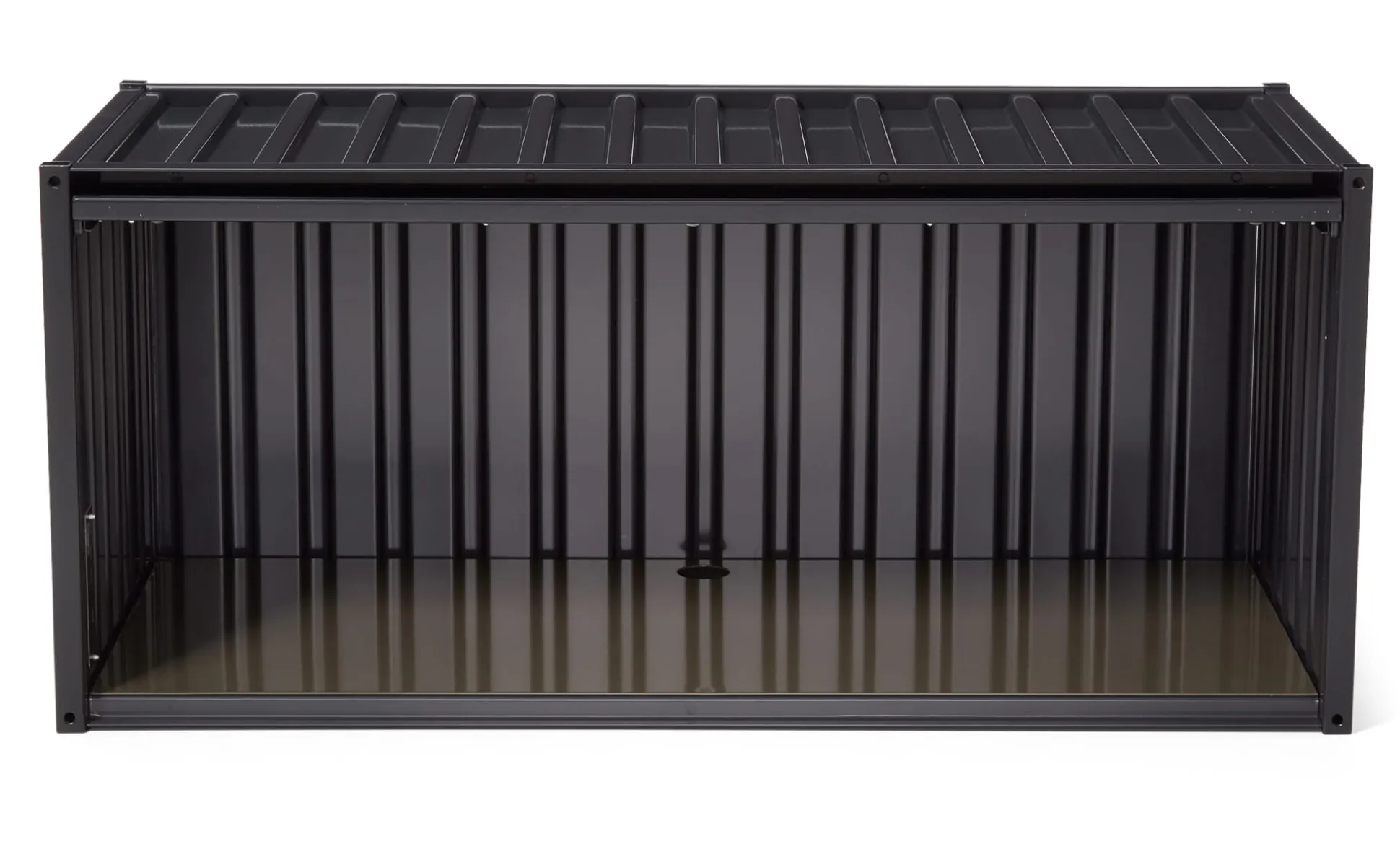 Synonym für Verstauen und Transportieren: der Container in seiner archetypischen Oberfläche aus gekantetem Stahl. Wir bieten diese Schrankmöbel in der miniaturisierten Gestalt der Überseecontainer in vier verschiedenen Ausführungen an. Diese wohlproportionierten Staukisten dienen vielerlei Zwecken und Einsatzbereichen. Alle Container besitzen Lochungen in den Böden zur Durchführung von Kabeln. Der klassische Container sowie der flache und der kleine Container besitzen oben am Korpus angeschlagene Türen, die beim Öffnen oben in den Korpus hineingleiten und auf diese Weise fast komplett verschwinden. Der CONTAINER DS PLUS steht hochkant und besitzt eine seitlich angeschlagene konventionelle Drehtür.