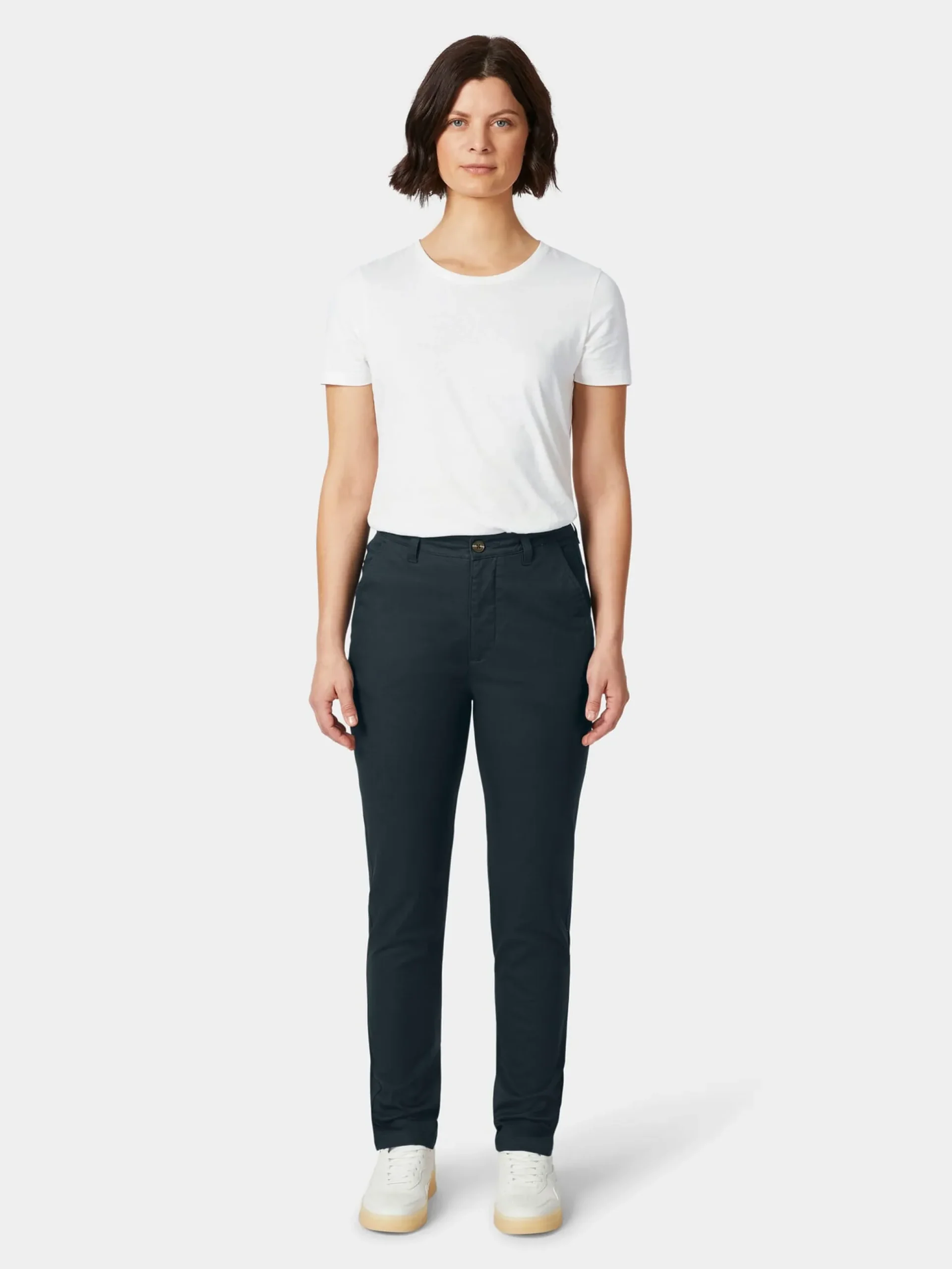 98% Baumwolle, 2% Elastan. Knopf und Reißverschluss aus Kunststoff. Hergestellt in Indien.