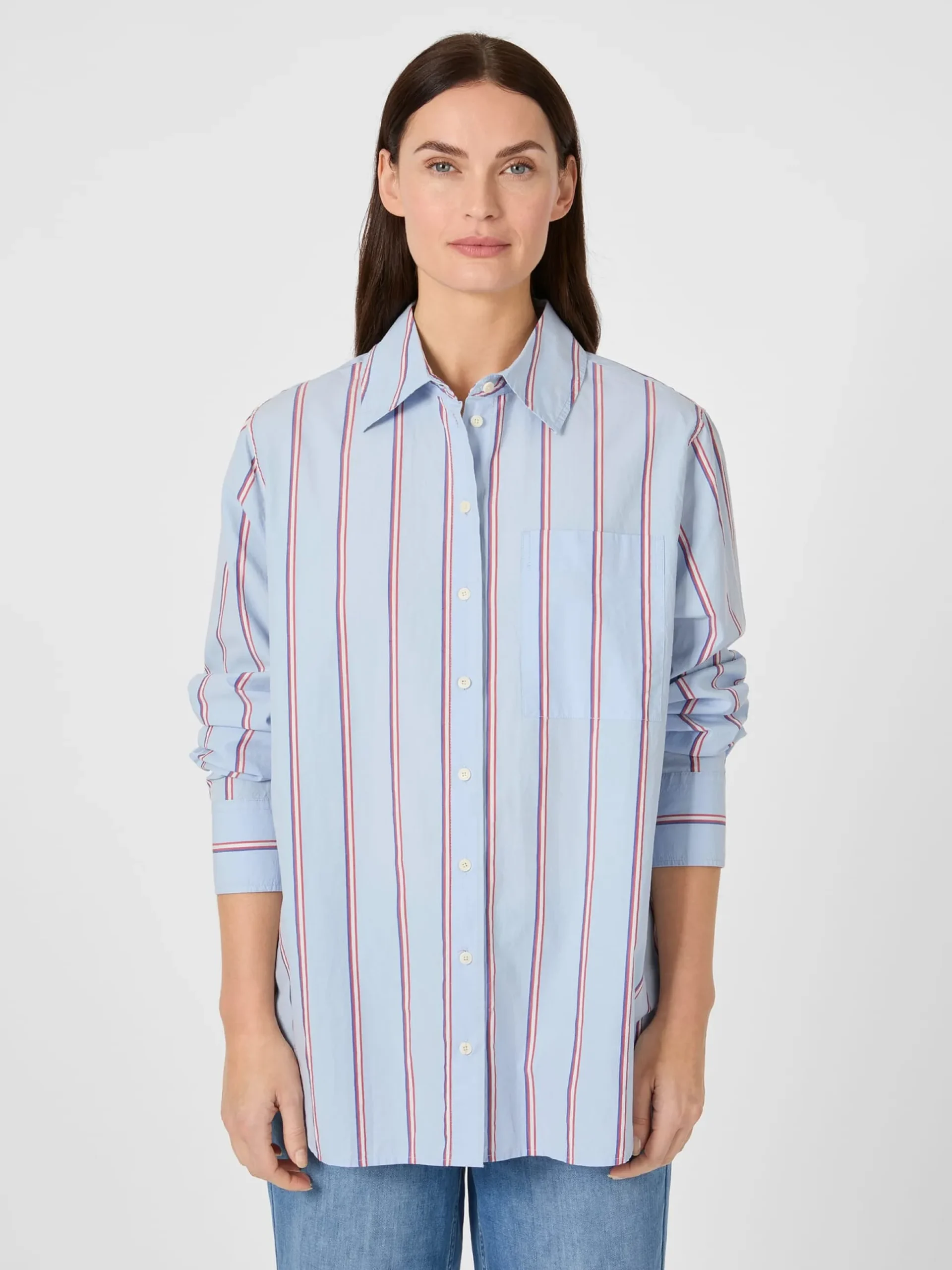 Die feinen, mehrfarbigen Streifen verleihen dieser Hemdbluse einen frischen, lebendigen Look. Armedangels fertigt sie aus kontrolliert biologisch angebauter Baumwolle, was sie hautsympathisch und atmungsaktiv macht. Die lockere Passform und eine Quetschfalte unter der Schulterpasse sorgen für einen bequemen, lässigen Sitz und viel Bewegungsfreiheit. Ausgestattet ist die Bluse mit einer mustergetreu aufgesetzten Brusttasche und geknöpften Manschetten. Der Saum ist gerundet und hinten länger als vorn.