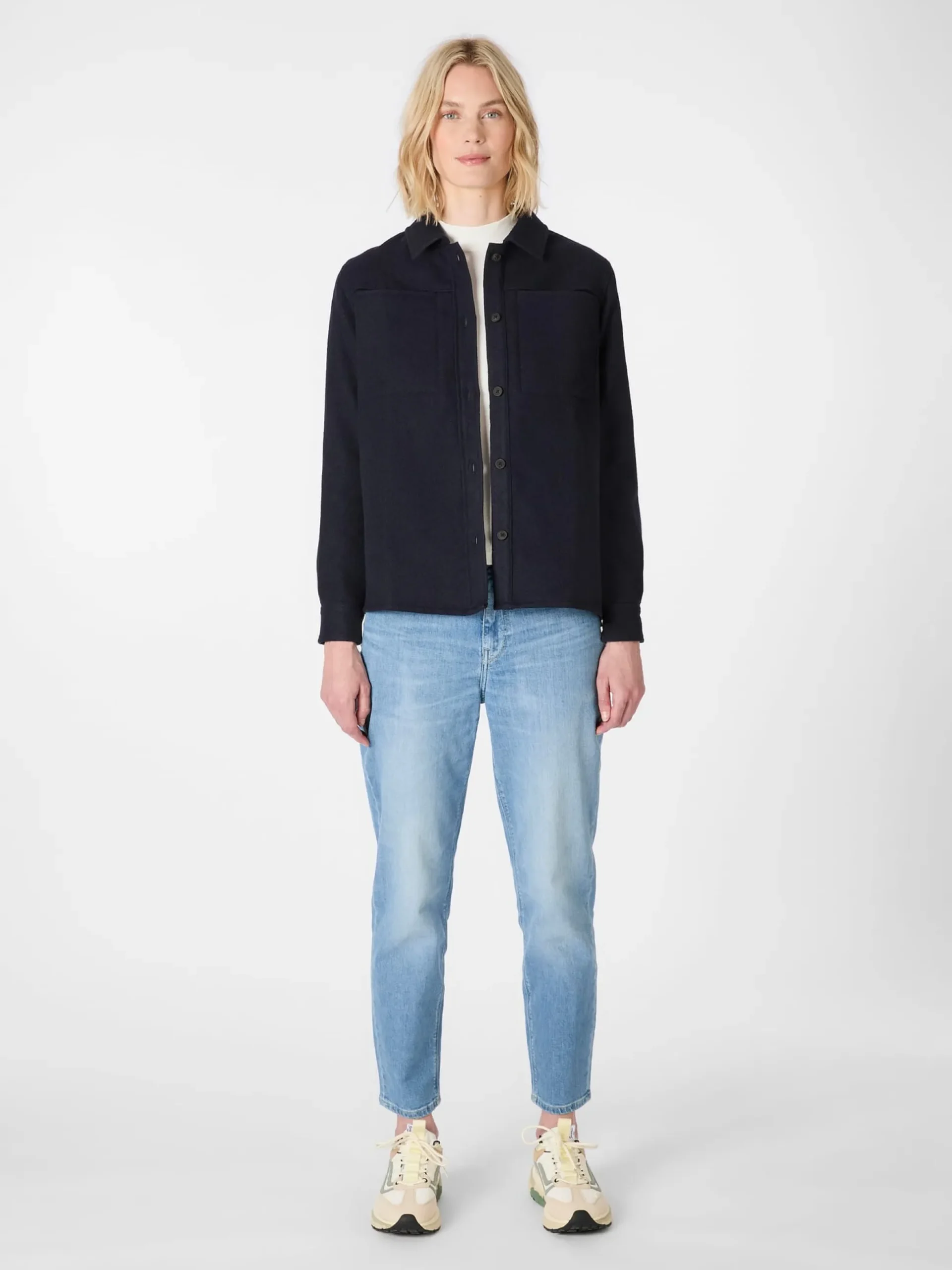 Klassische Hemdjacke in geradem Schnitt – geradezu ideal für die Übergangszeit, kann sie doch als Solitär, aber auch wie ein Hemd unter einer Jacke getragen werden. Das kräftige, dichte Gewebe zeigt einen markanten Köpergrat und ist besonders strapazierbar und langlebig. Es schenkt an kalten Tagen die notwendige Wärme und schützt vor kühlen Winden, gleichzeitig ist es temperaturausgleichend und atmungsaktiv. Die Ärmel sind mit einem Futter aus kontrolliert biologisch angebauter Baumwolle versehen, was für zusätzlichen Tragekomfort sorgt – gerade, wenn Sie ein kurzärmliges Shirt unter der Jacke tragen möchten und ein wenig empfindlich auf Wolle reagieren. Ausgestattet ist die Hemdjacke mit zwei Brusttaschen, einer Schulterpasse vorn und hinten und geknöpften Manschetten.
