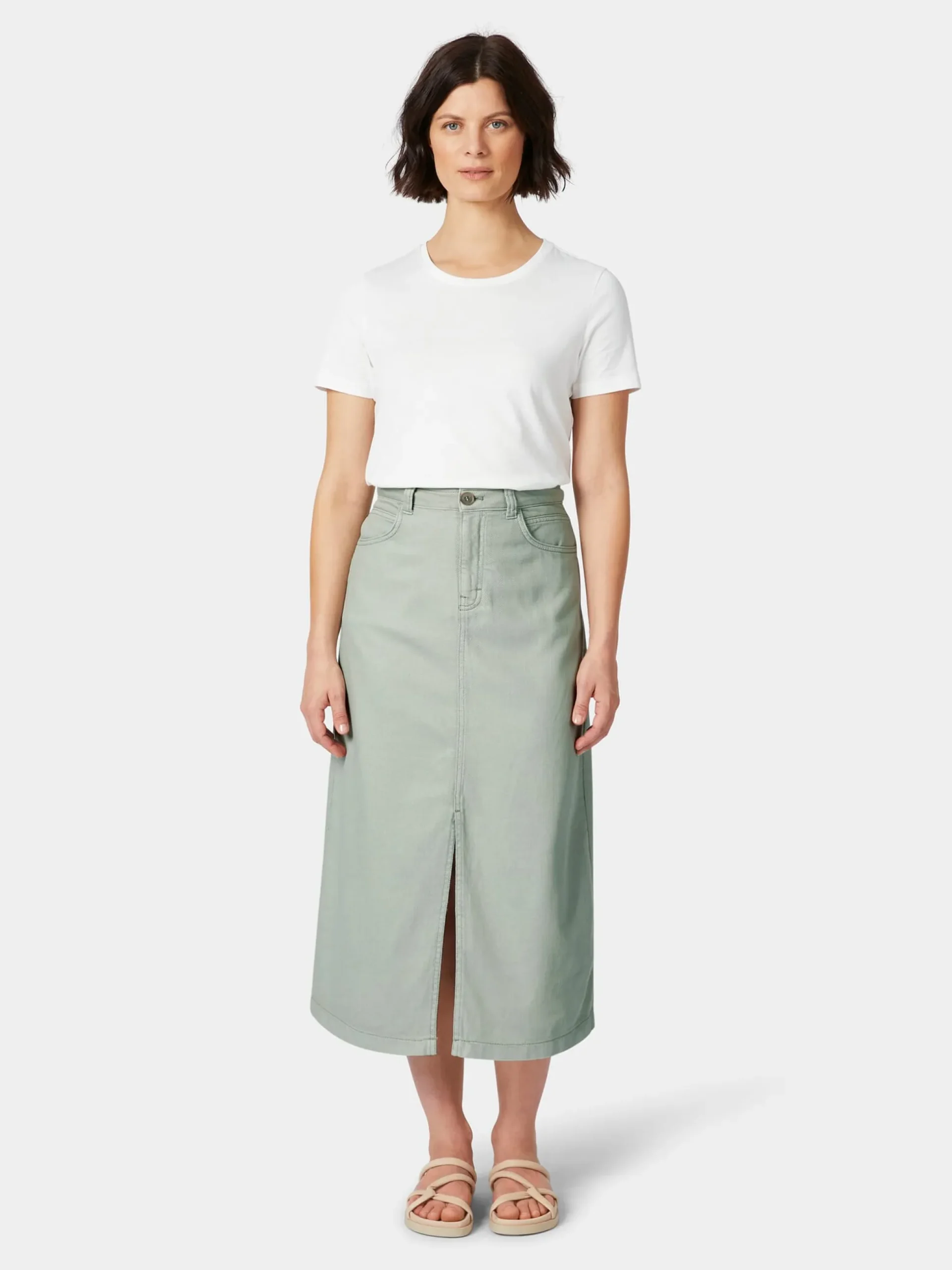 Lässig und bequem ist dieser Jeansrock und dabei so zeitlos, dass er kurzlebige Trends spielend übersteht. Er lässt sich mit Sandalen wie auch mit Sneakern oder Boots kombinieren und ist damit ein Lieblingsstück für jede Jahreszeit. Der strapazierbare Denim besteht aus hautsympathischer, kontrolliert biologisch angebauter Baumwolle und zeigt einen markanten Köpergrat. Gearbeitet ist der wadenlange Rock in leicht ausgestellter Passform und mit hohem Bund. Für mehr Bewegungsfreiheit ist er vorn mit einem langen Gehschlitz gearbeitet. Geschlossen wird er mit Reißverschluss und Steinnussknopf. Zwei Seitentaschen und zwei aufgesetzte Gesäßtaschen bieten Platz für Kleinteile des täglichen Bedarfs.
