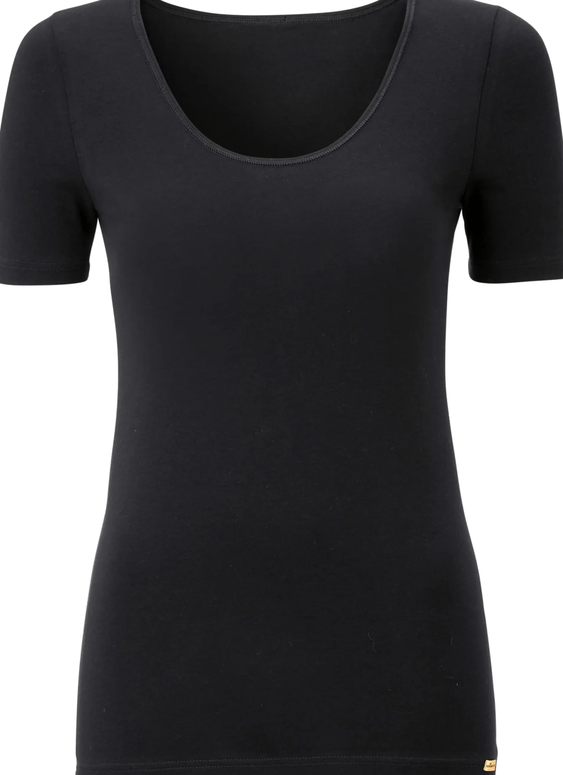Dieses modisch geschnittene Kurzarmshirt zeichnet sich durch einen besonders weichen Griff aus. Der Jersey, aus dem es gemacht ist, besteht aus Bio-Baumwolle und Elastan. Durch letzteres schmiegt sich das Shirt weich an und bleibt dauerhaft in Form. Durch den angenehm weiten Rundhalsausschnitt lässt es sich auch gut als Unterziehshirt tragen, etwa unter einer Bluse. Der Halsausschnitt ist eingefasst, die Ärmelabschlüsse sind filigran gebördelt.