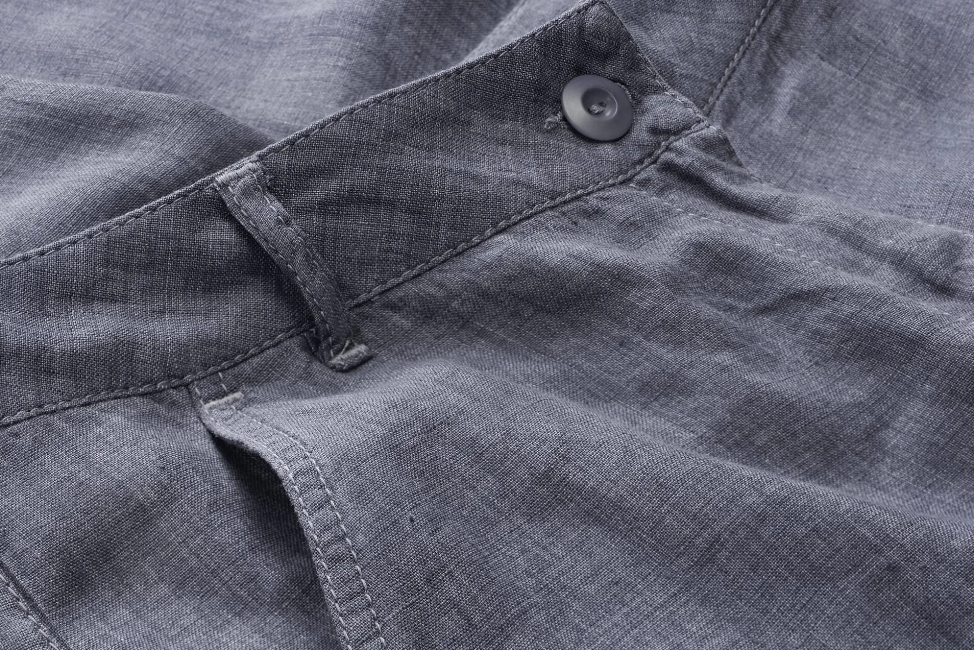 Sommerliche Hose aus locker fallendem Leinengewebe, dessen leicht unterschiedliche Kett- und Schussfäden für eine schöne Melangeoptik sorgen. Die Hose ist mit zwei seitlichen Eingrifftaschen und hinten mit zwei Doppelpaspeltaschen gearbeitet.