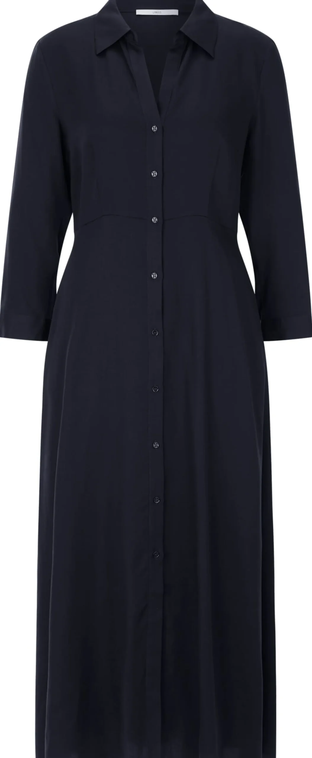 In diesem Midikleid treten sie stilvoll und beschwingt dem Sommer entgegen. Lanius fertigt es aus reinem Lyocell (TENCEL™), einer Regeneratfaser, die aus Holz gewonnen wird, das aus kontrollierten Quellen stammt. Das hautsympathische und atmungsaktive Gewebe ist leicht strukturiert und zeigt einen subtilen Glanz. Der leicht taillierte Schnitt und die formgebenden Brustabnäher sorgen für eine schmeichelhafte, feminine Silhouette, während der ausgestellte, fließend fallende Rockteil dem Kleid einen eleganten Schwung und viel Bewegungsfreiheit verleiht. Ausgestattet ist das durchgeköpfte Blusenkleid mit Hemdkragen, dreiviertellangen Ärmeln und zwei in die Seitennaht eingesetzten Taschen.