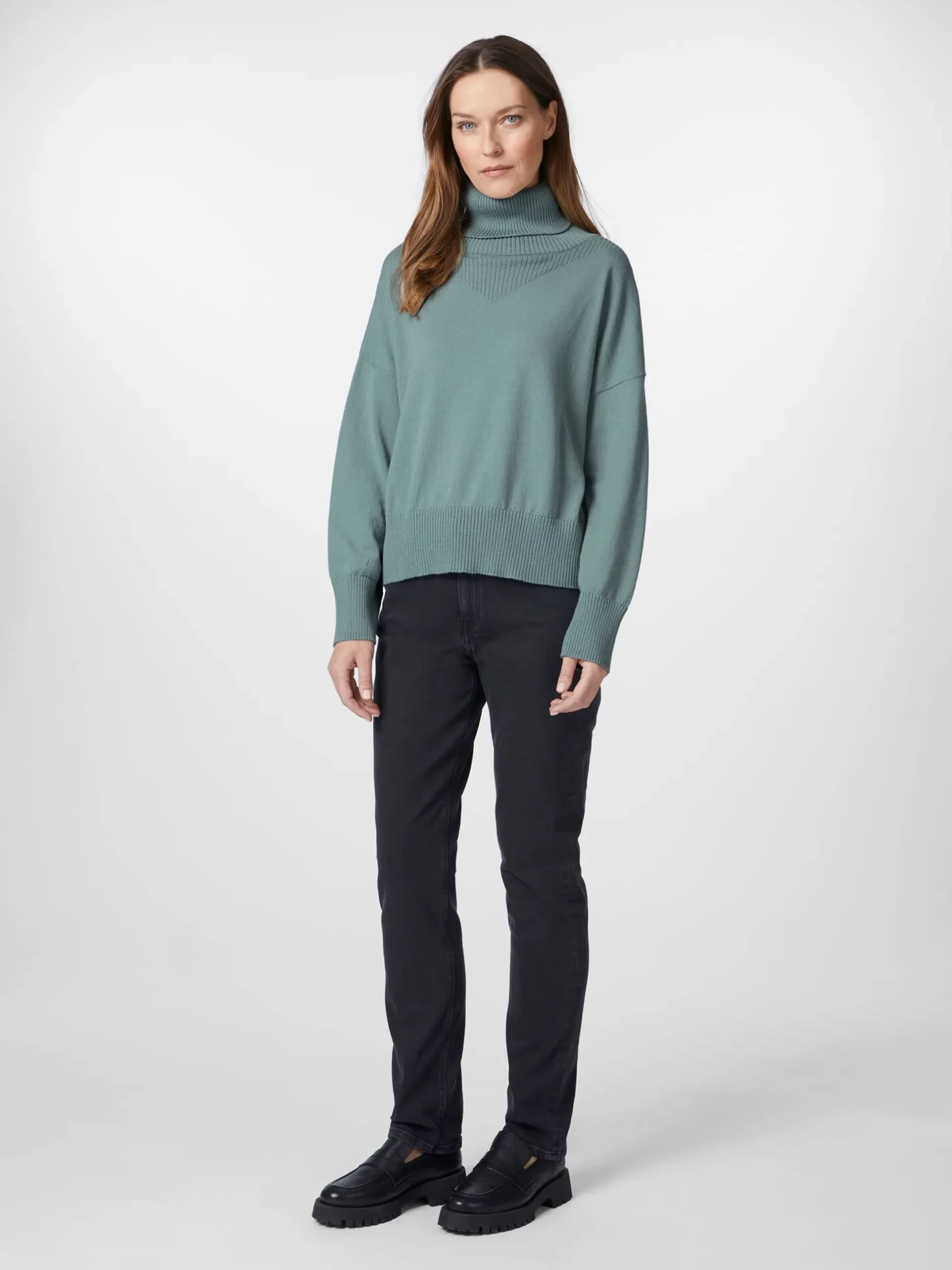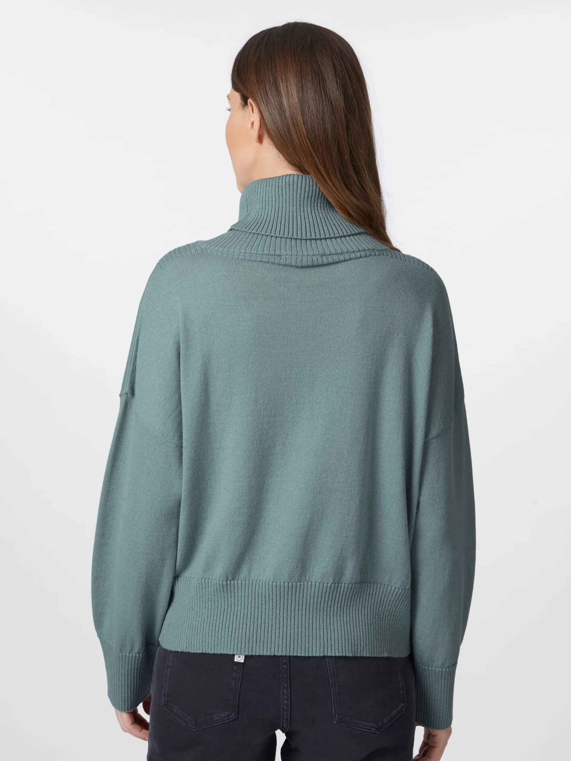 Dieser leichte Rollkragenpullover eignet sich perfekt für die Übergangszeit. Das feine Gestrick besteht je zur Hälfte aus hautsympathischer, kontrolliert biologisch angebauter Baumwolle und wärmender, temperaturausgleichender Wolle aus kontrolliert biologischer Tierhaltung. Für zusätzlichen Tragekomfort sorgt der legere, eher weite Schnitt. Ärmel und Rumpf schließen mit Rippenstrickbündchen ab. Dank seiner schlichten Optik lässt sich der Pullover vielseitig kombinieren – zu Jeans, Chino oder Rock, mit Blazer, Strickjacke oder Wintermantel.