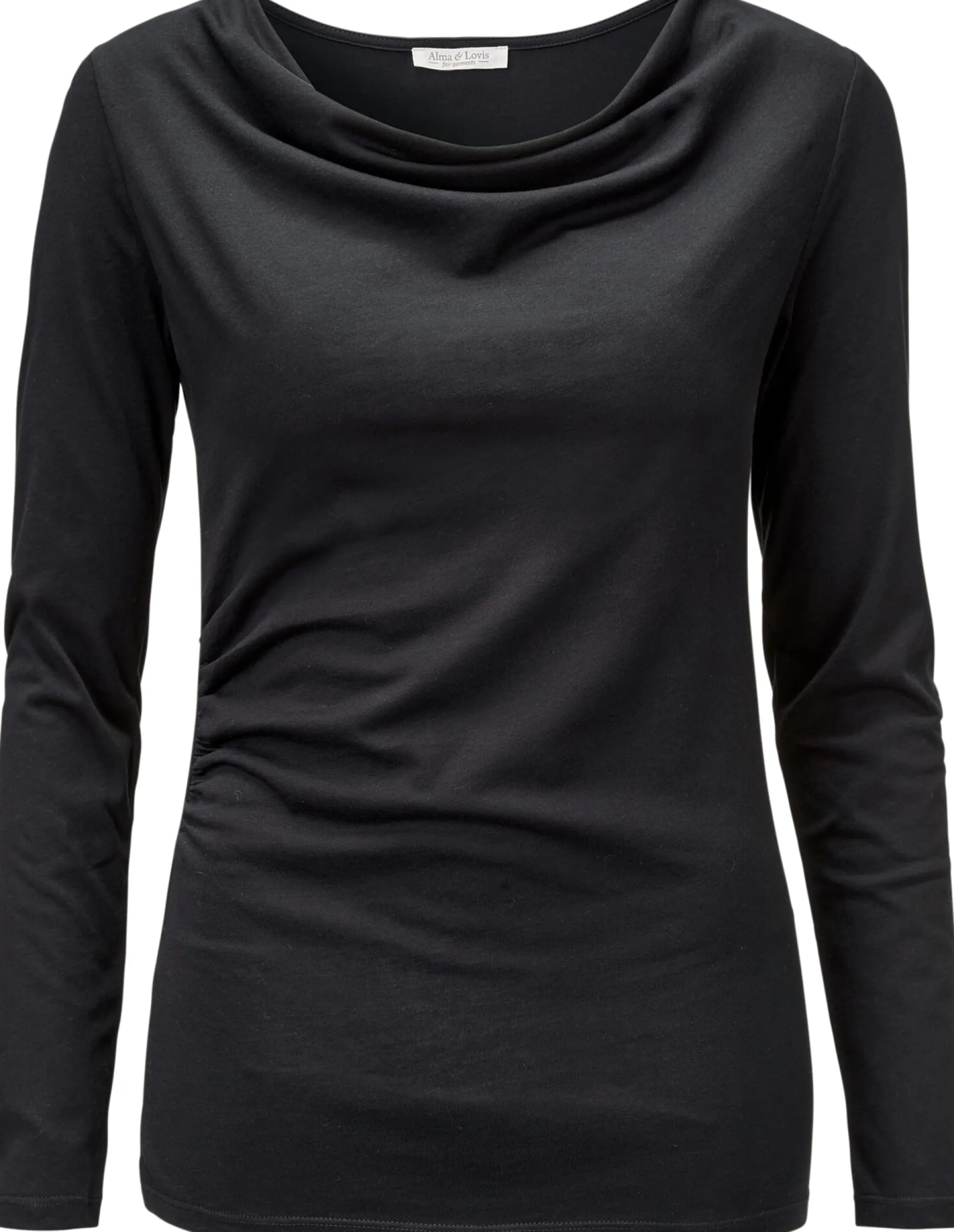 Shirt aus feinem kbA-Baumwollgewebe mit fließend fallendem Wasserfall-Ausschnitt. Der Rumpf ist einseitig gerafft.